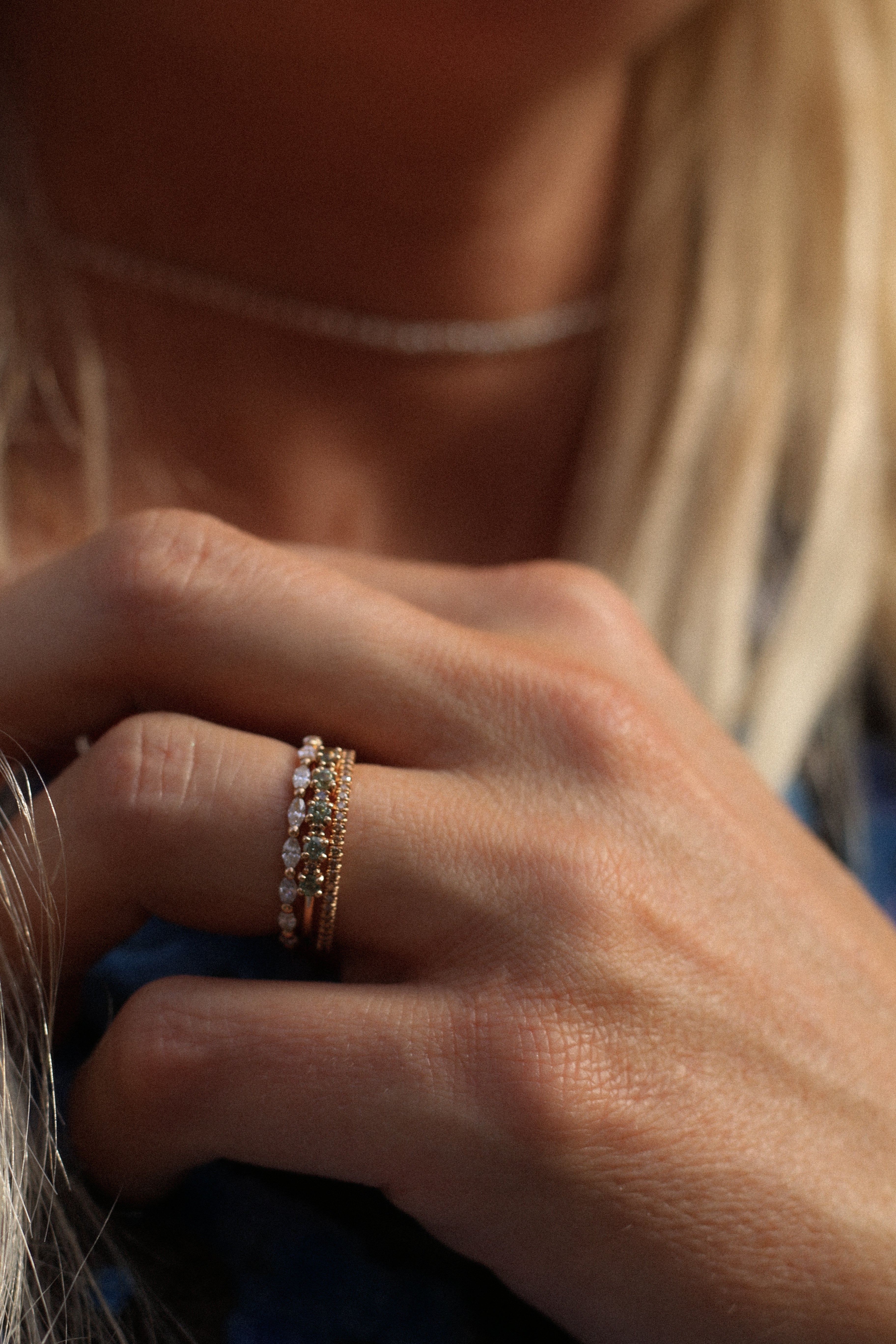 Det som verkligen gör den till en ring med det lilla extra är dess mångsidighet: cool nog att bäras för sig själv i all sin minimalistiska prakt - samtidigt som den kan bäras med nästan vilka andra ringar som helst och verkligen kompletterar en stack!