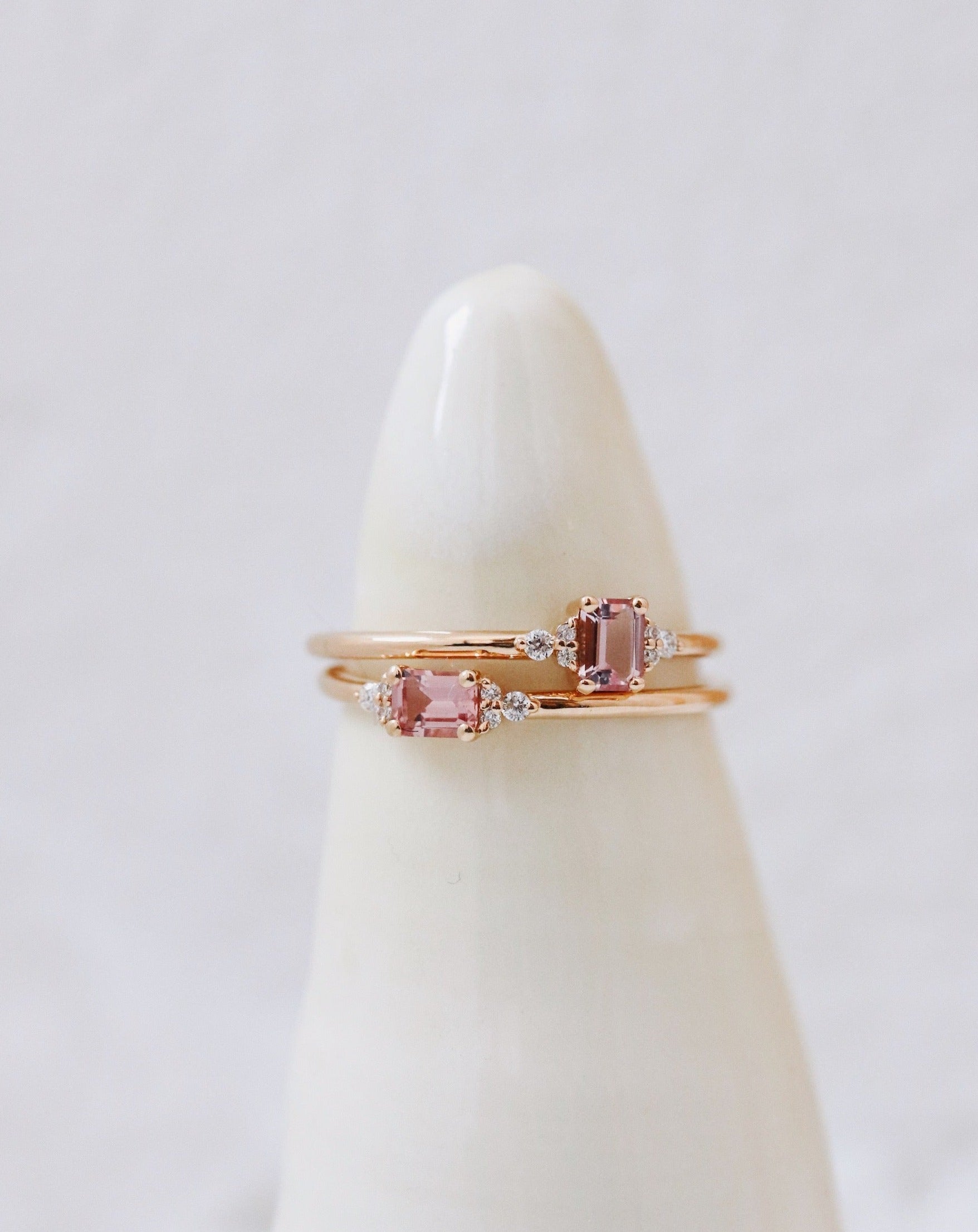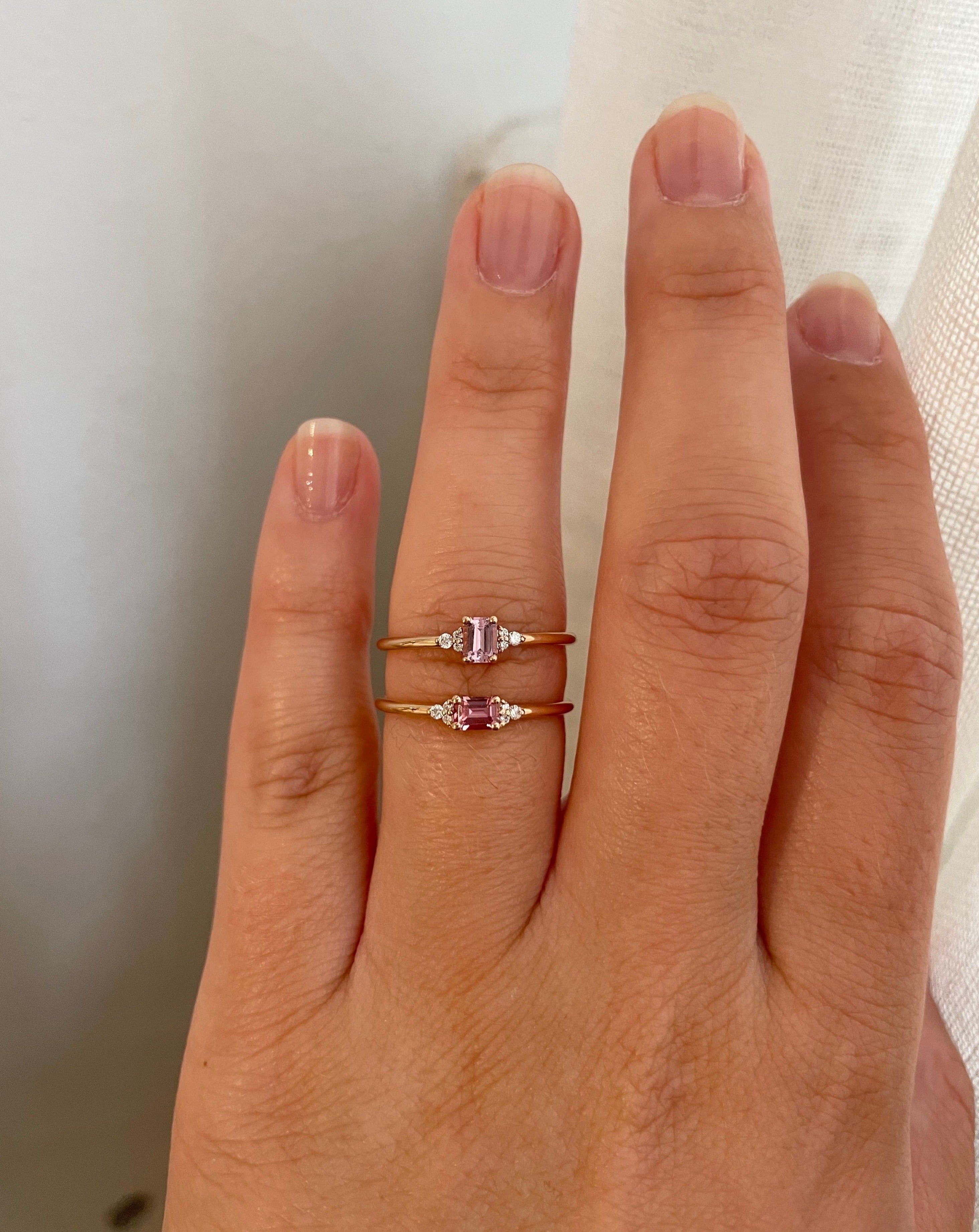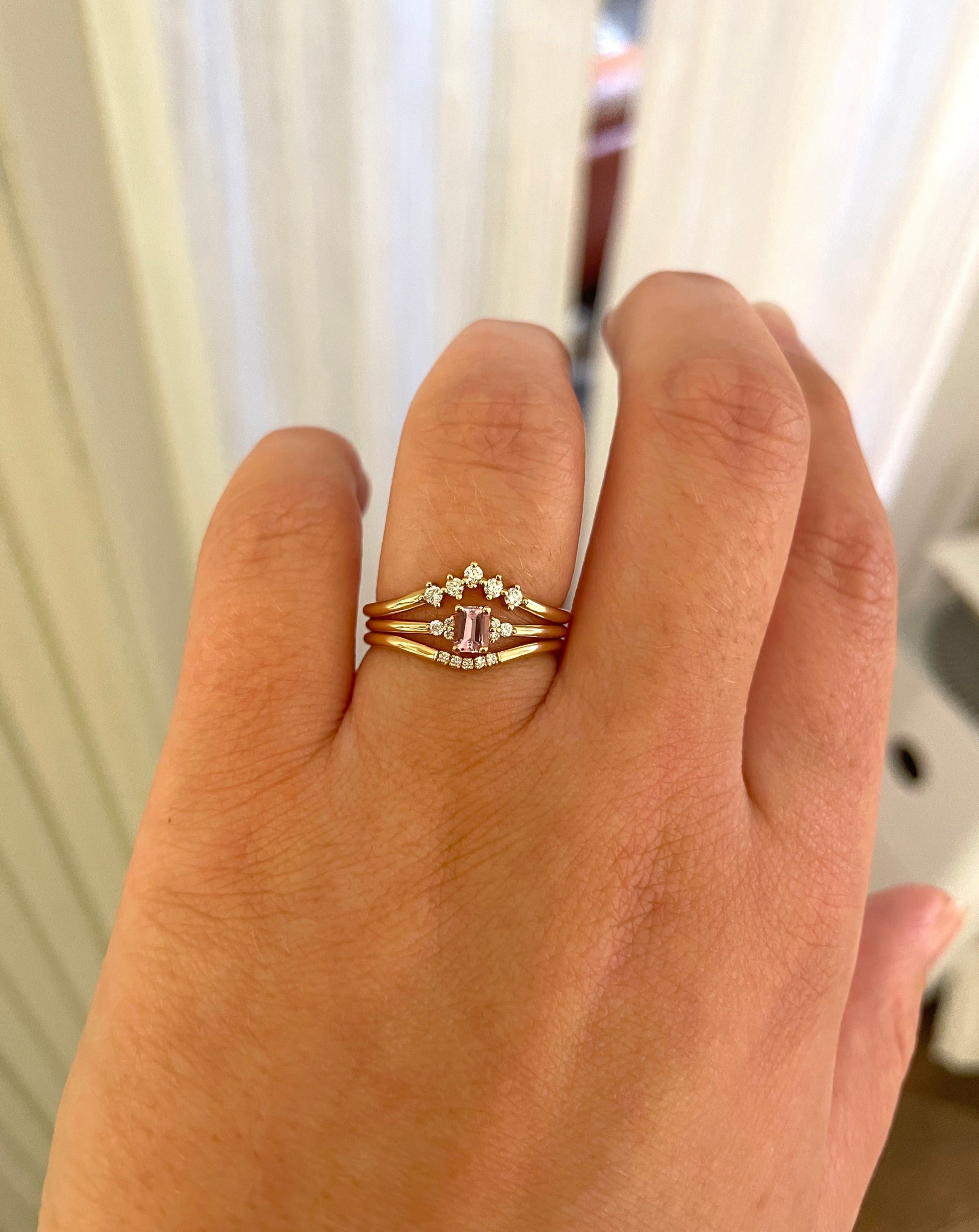 Here we've stacked the ring with Five Diamond Triangle Ring and Five Dots Top Ring.