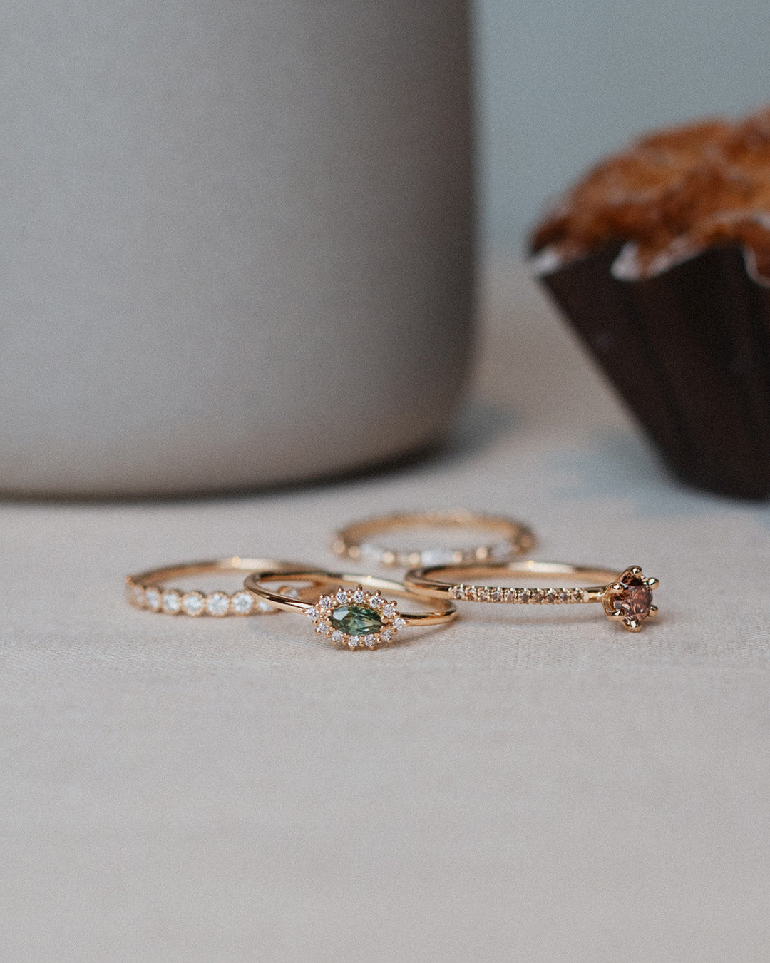 Ringar med ädelstenar: standard produktionstid 6-7 veckor.