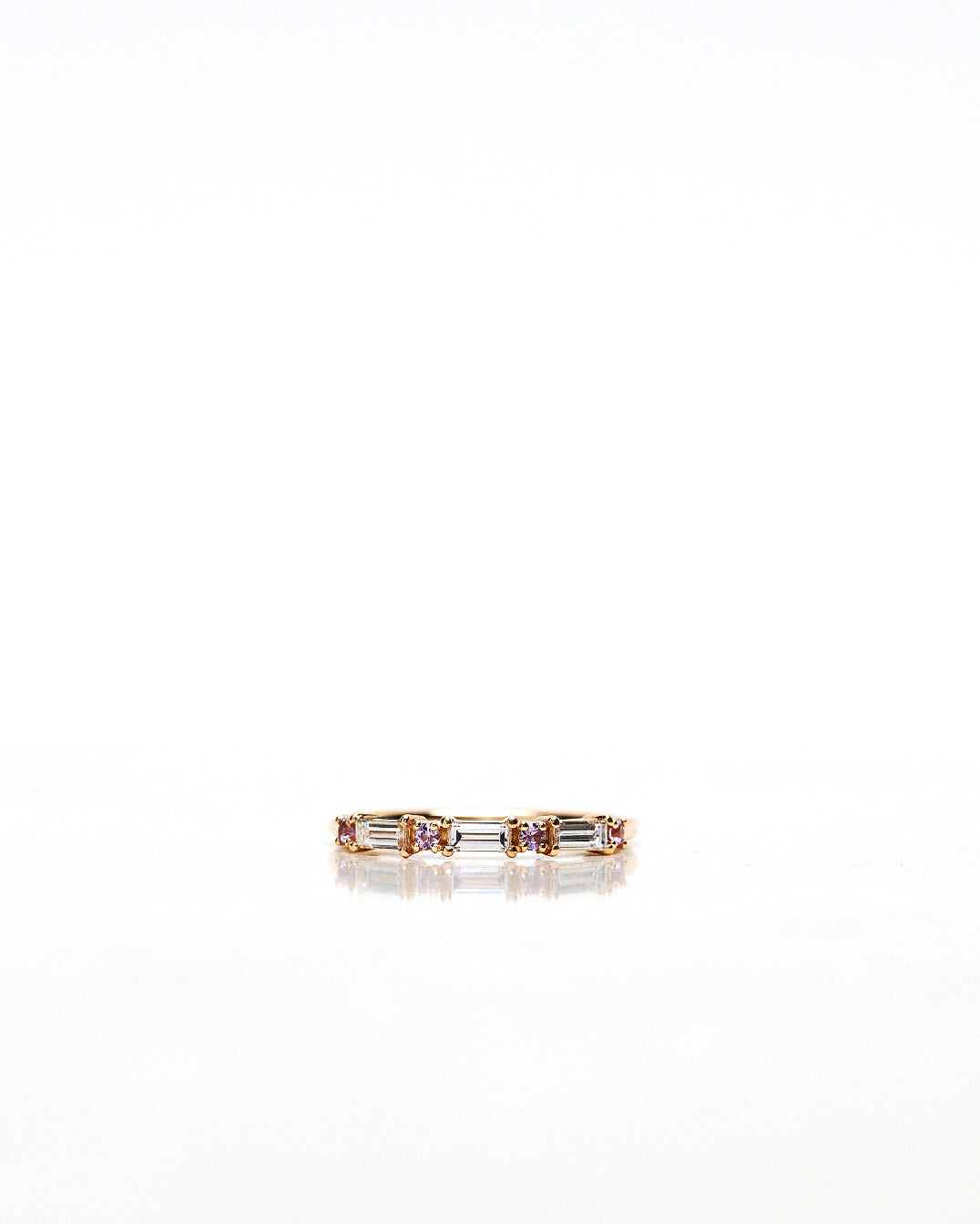Sania Baguette Brilliant Diamond Band with Diamonds and Light Pink Sapphires