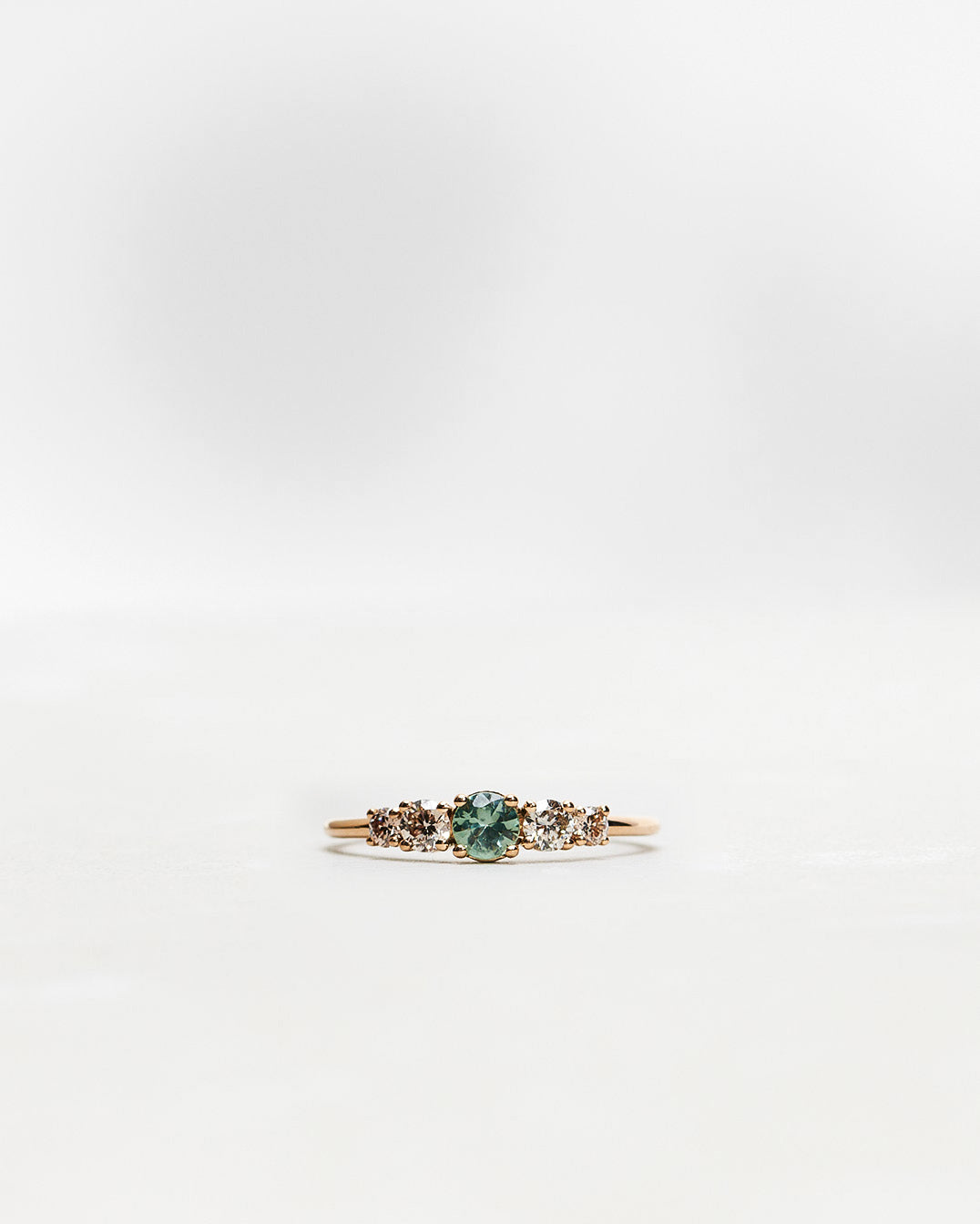 - Elise Ring with Olive Green Sapphire and Champagne Diamonds