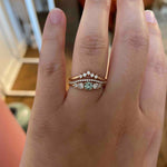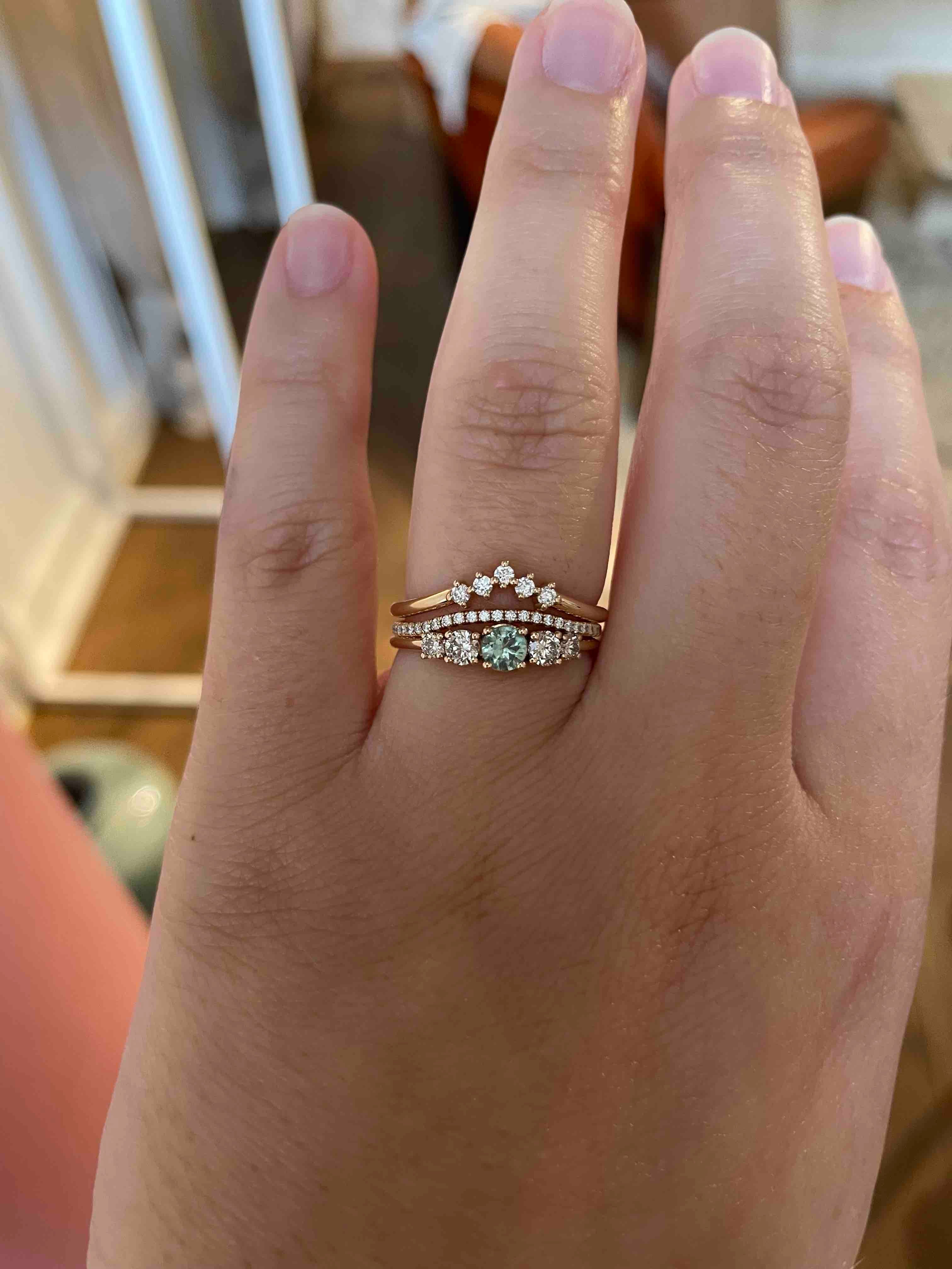 Elise Ring is beautiful alone on the ring finger. It also stacks beautifully with all curved bands.