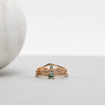This version of the Not At All Tiny Sparkle Ring – Low Setting features one of our favorite color combinations, olive green sapphires and champagne diamonds, paired with the soft color of rose gold.