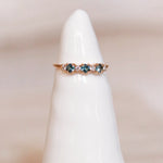 This beautiful version of Brigitte Ring features completely natural sea blue tourmalines.