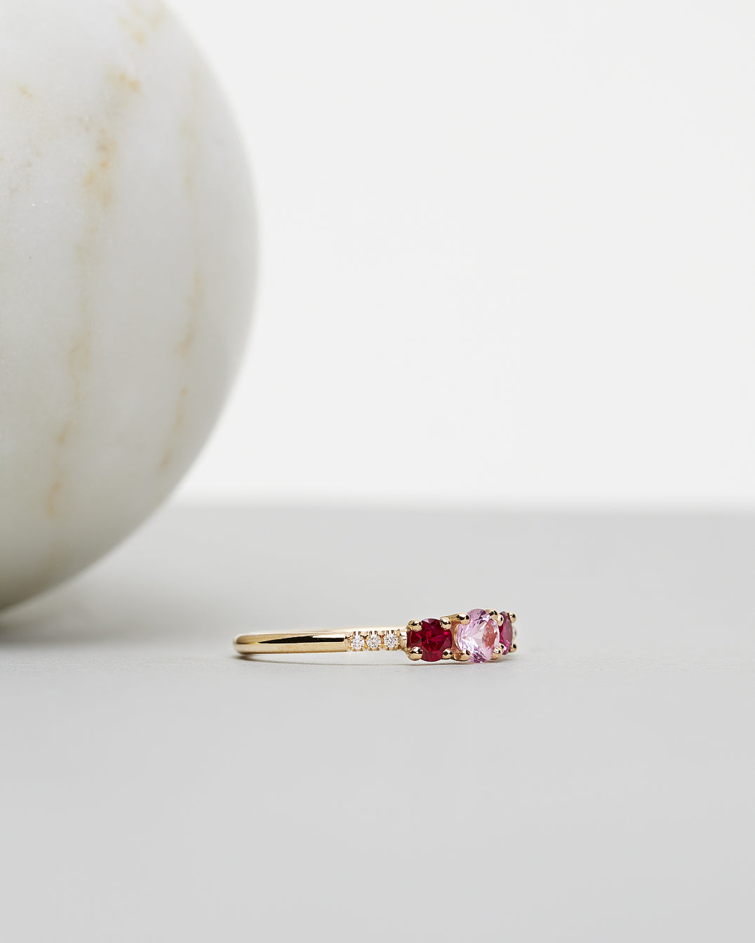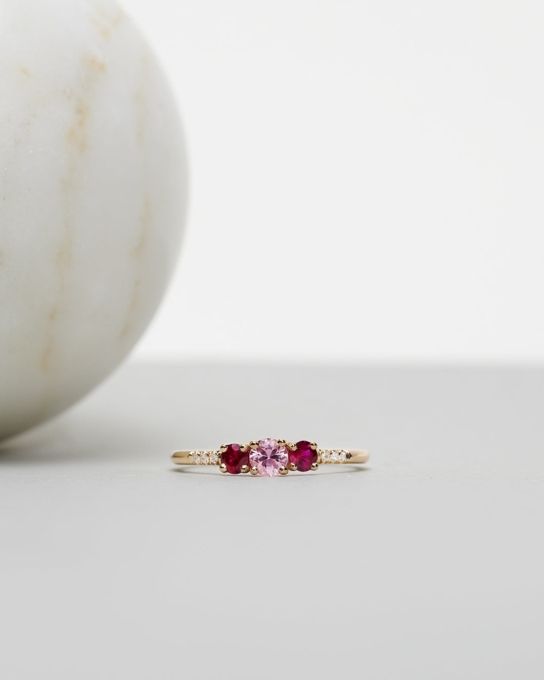 - Edith Little Sparkle Ring with Light Pink Sapphire, Red Rubies and Diamonds TWVS