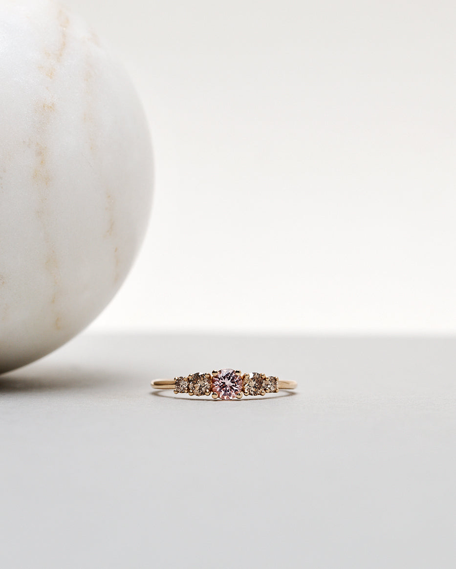 A champagne diamond is a naturally brown diamond with a soft, varm tint. They can range in hue from light to darker, resembling the color of champagne.