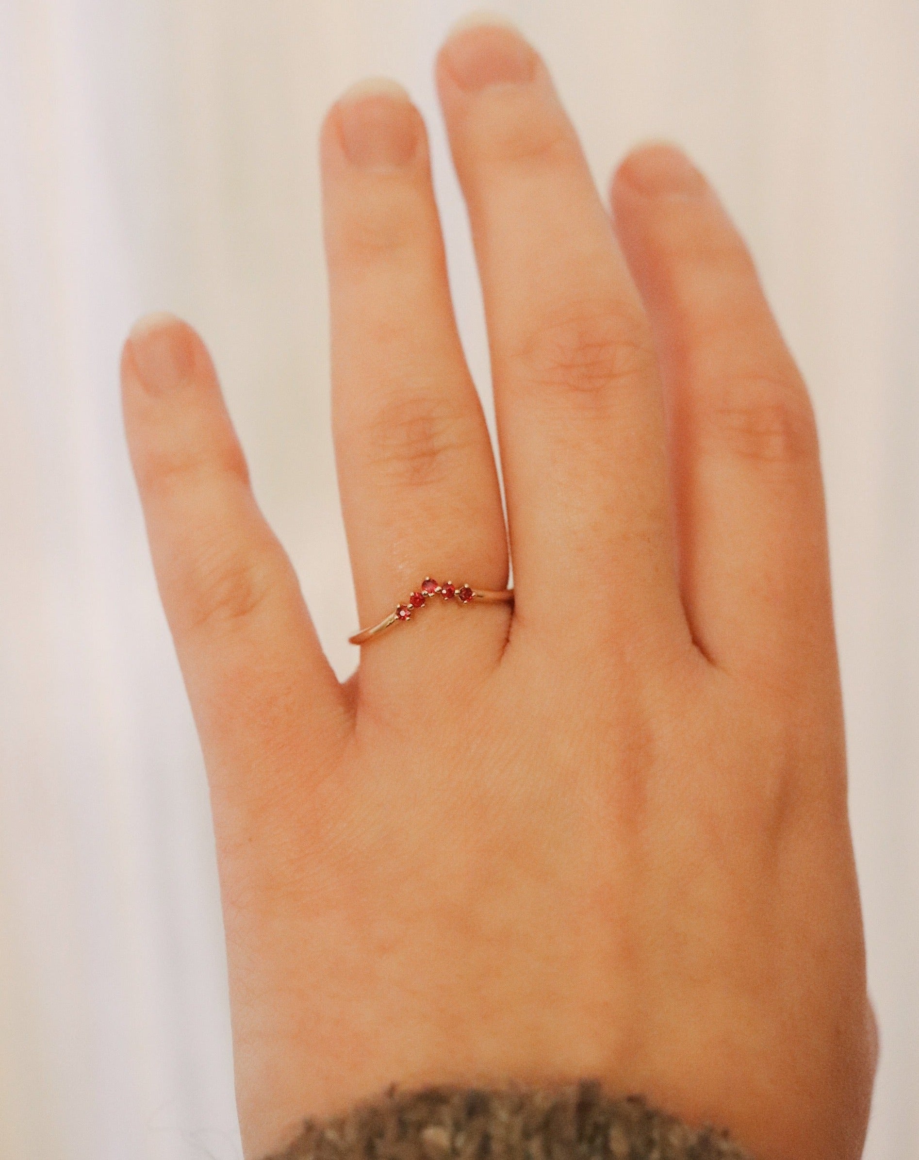 Finished: Five Diamond Triangle Ring with Red Rubies