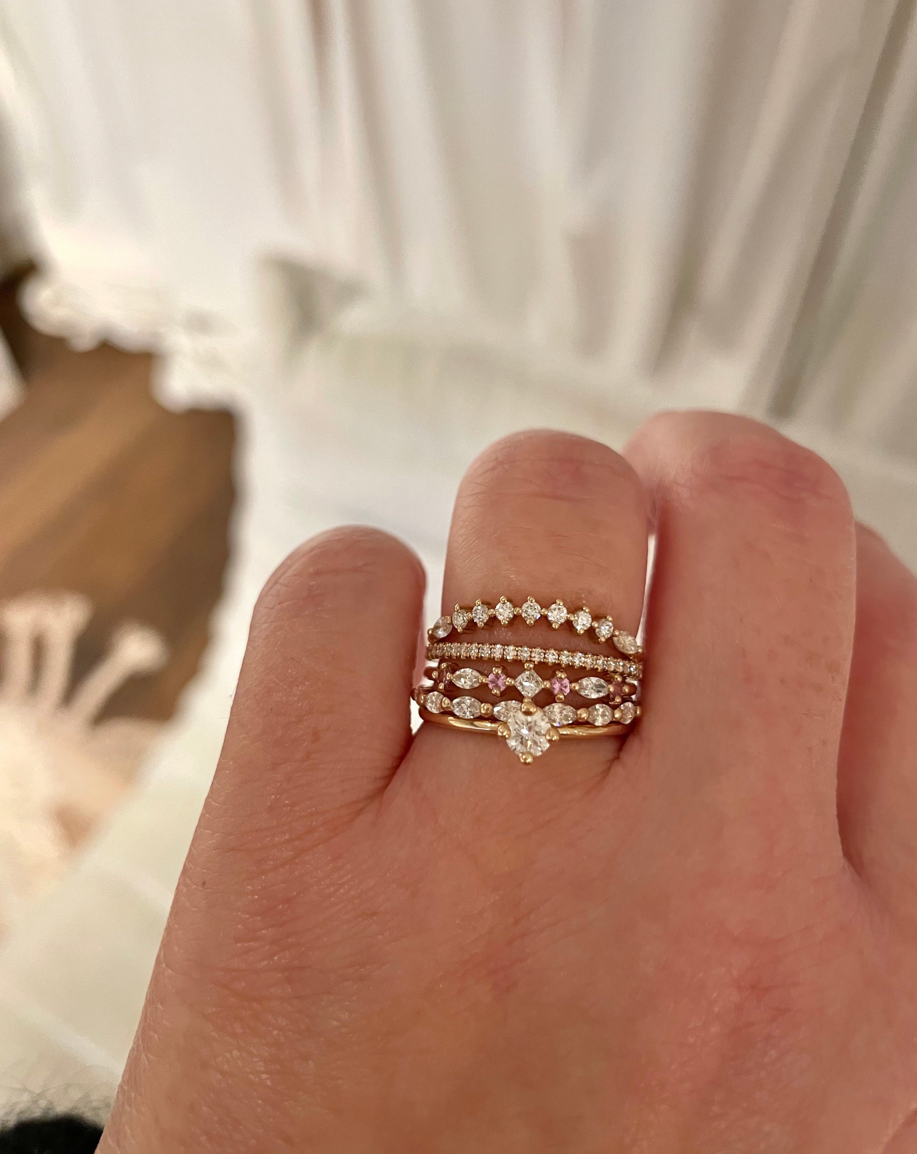 This ring looks beautiful alone on any finger but is also perfect for stacking.