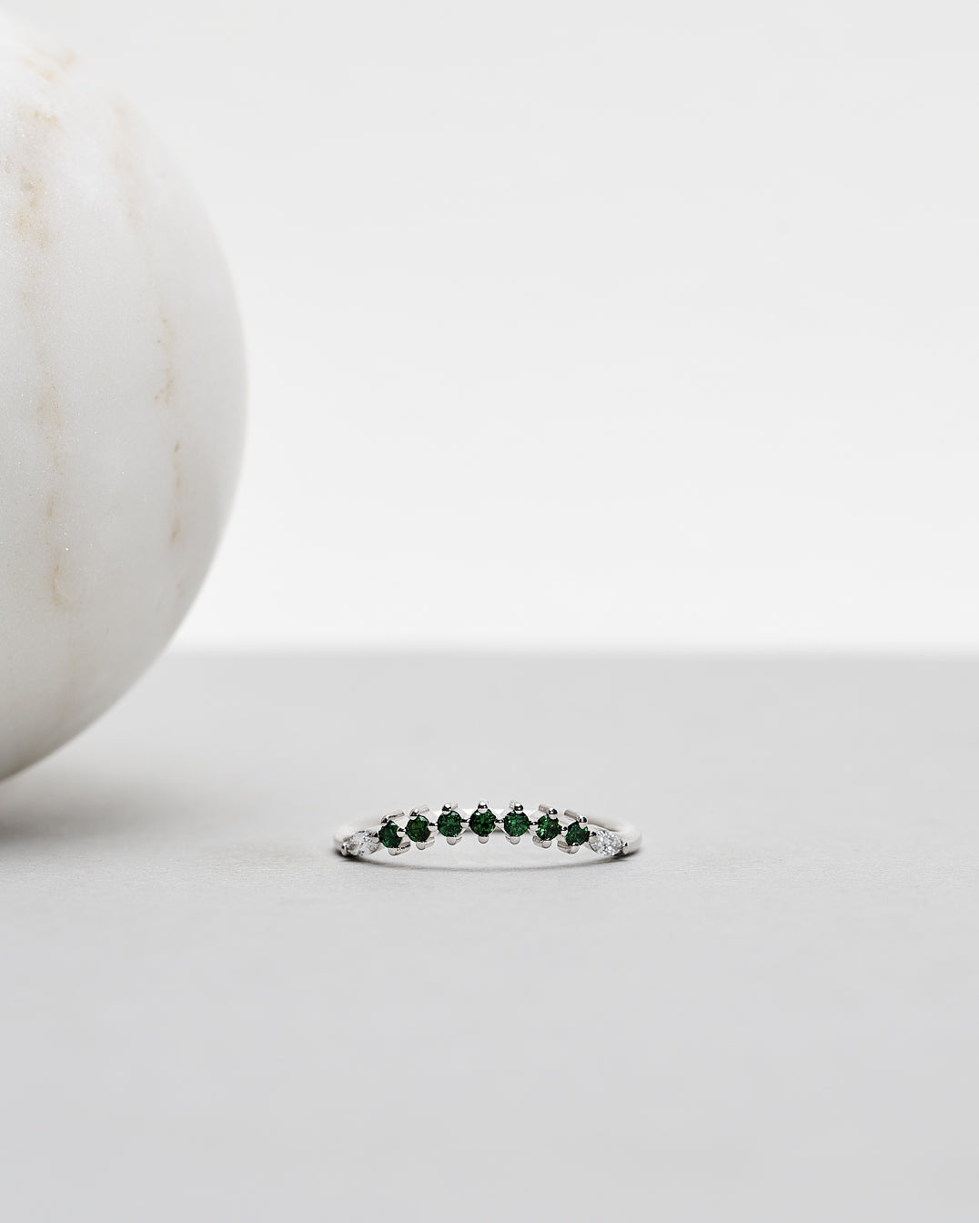 Finished: Idun Curved Diamond Band in White Gold with Dark Green Tourmalines and Diamonds TWVS