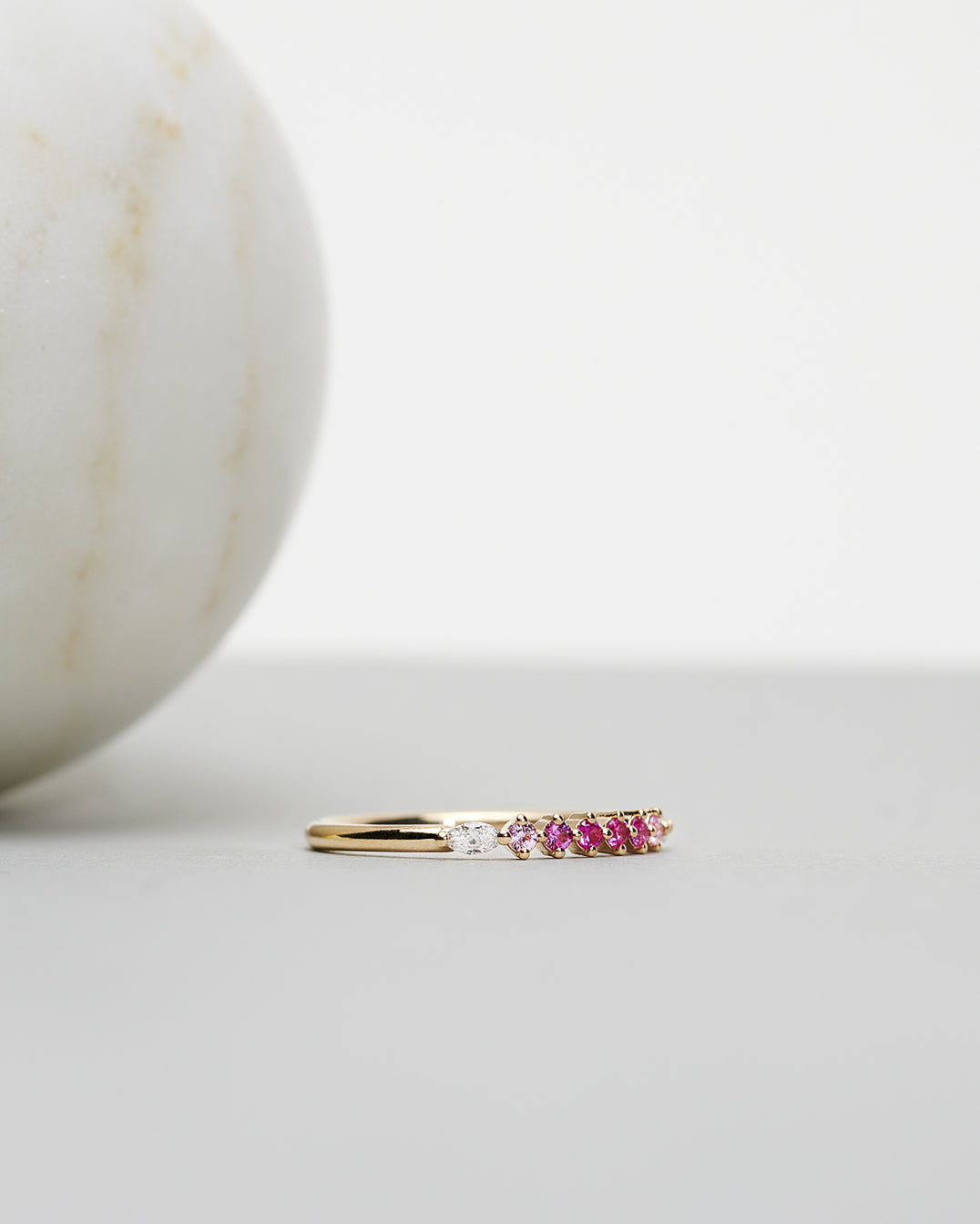 Finished: Idun Diamond Band with Pink Sapphire Gradient
