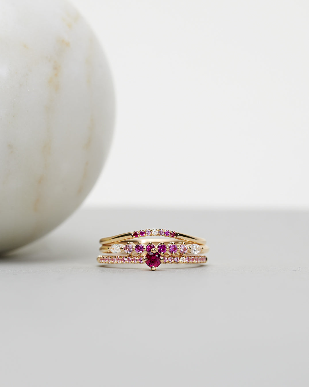 This week, we have used pink sapphires, red rubies and white diamonds to create five lovely rings.