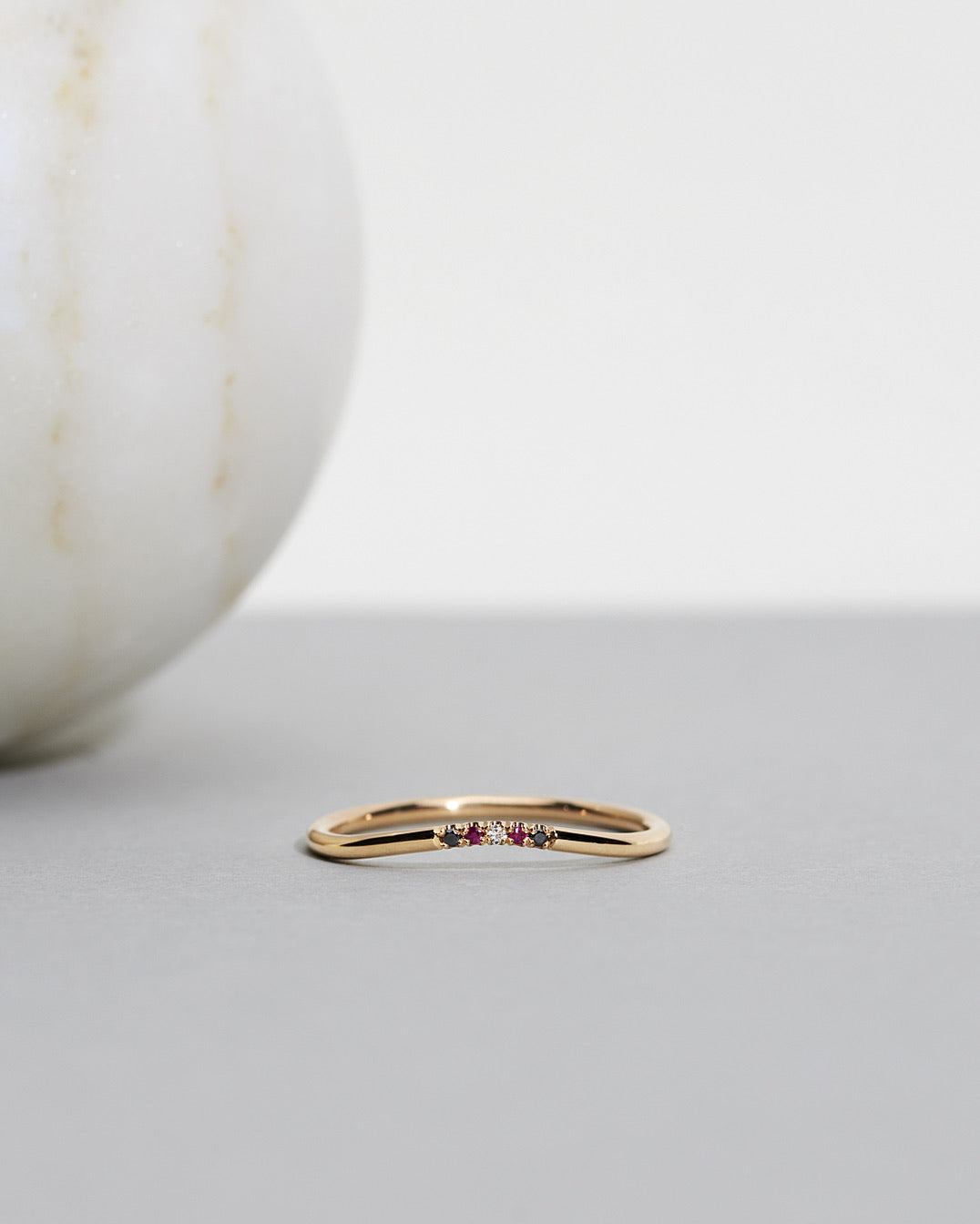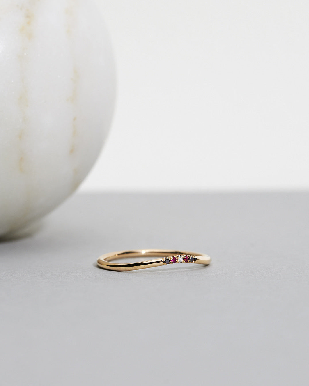 - Jade Petite Wave Enough Ring with Black Diamonds, Red Rubies and a Diamond TWVS