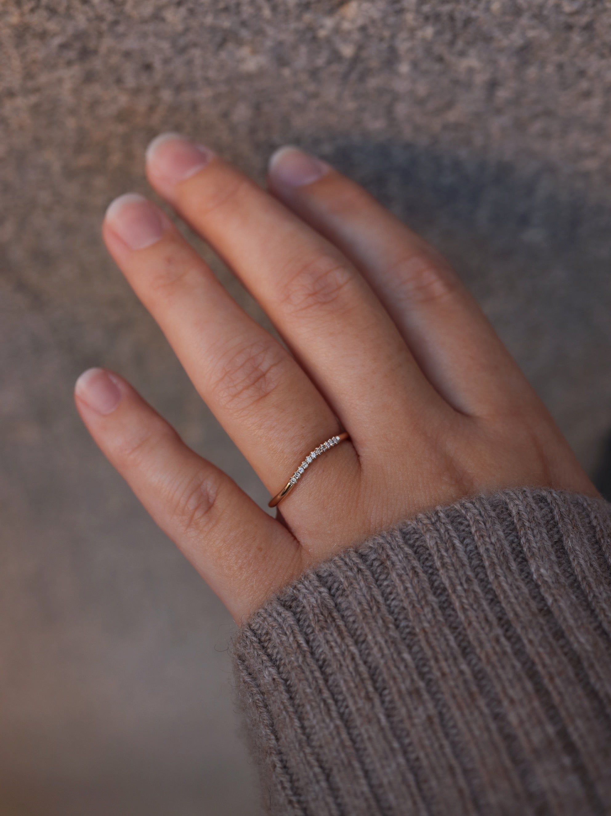 It also goes perfectly on the top or at the bottom of a stack. It stacks well with almost any other ring in our collection, including Edith Ring and Greta Ring.