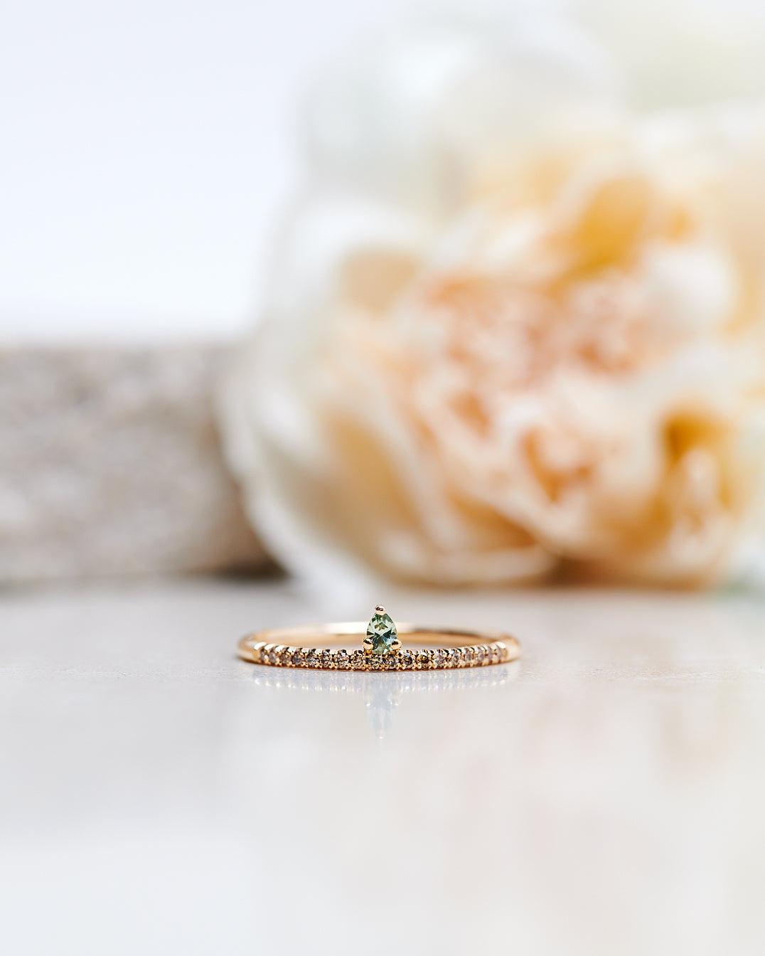 - Lily Tiny Drop Ring with an Olive Green Sapphire Drop and Chocolate Diamonds