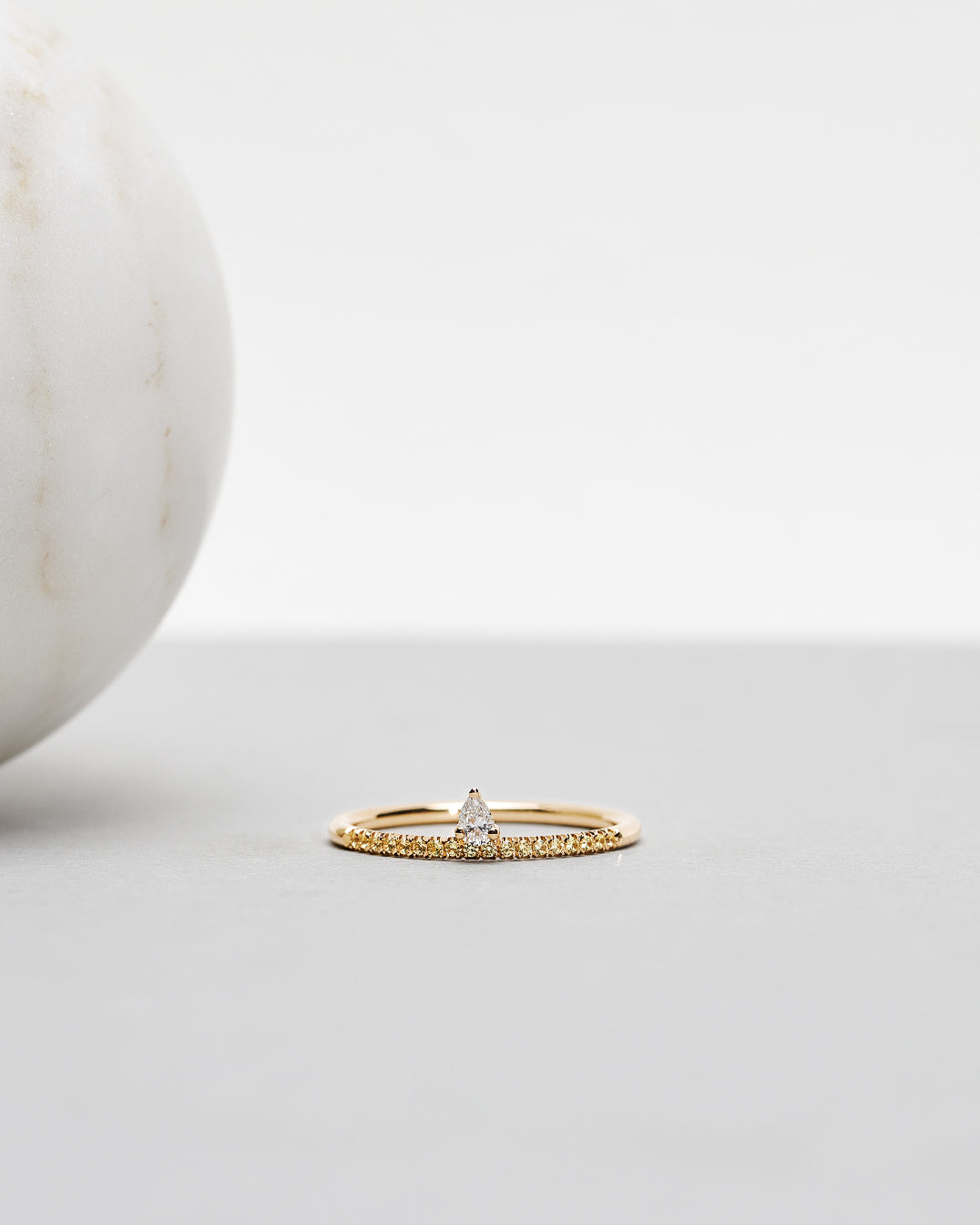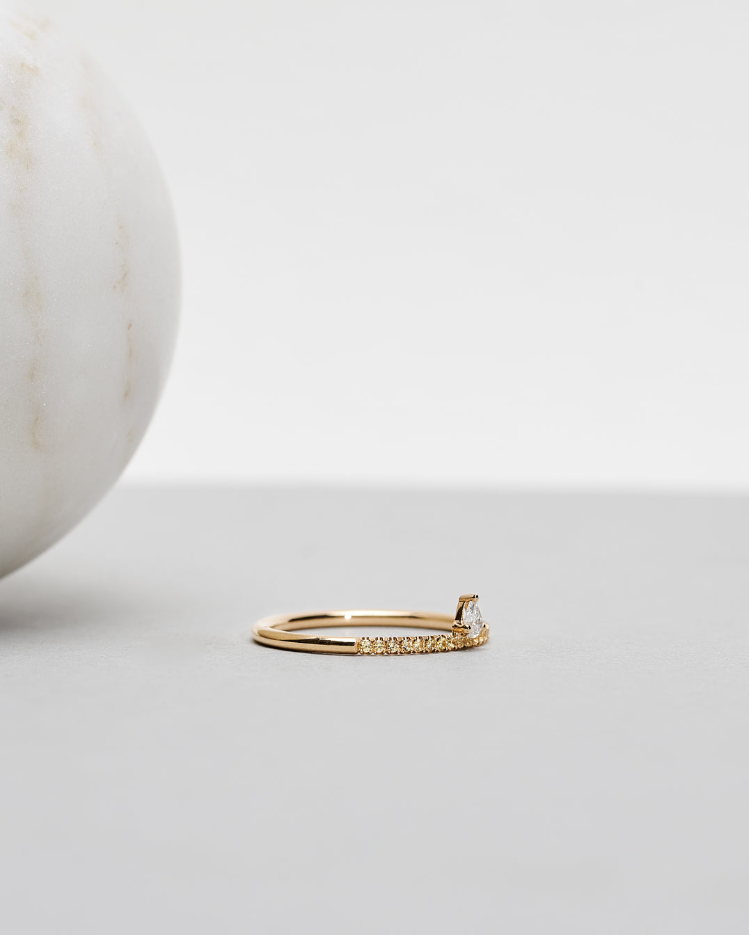 The Lily Tiny Diamond Drop Ring is a stylish ring that makes a versatile addition to any collection. It looks just as pretty on top of a stack as it does alone on any finger.
