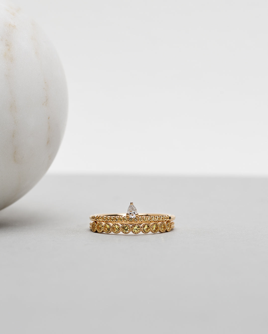 - Lily Tiny Diamond Drop Ring with Yellow Sapphire Row and Diamond TWVS