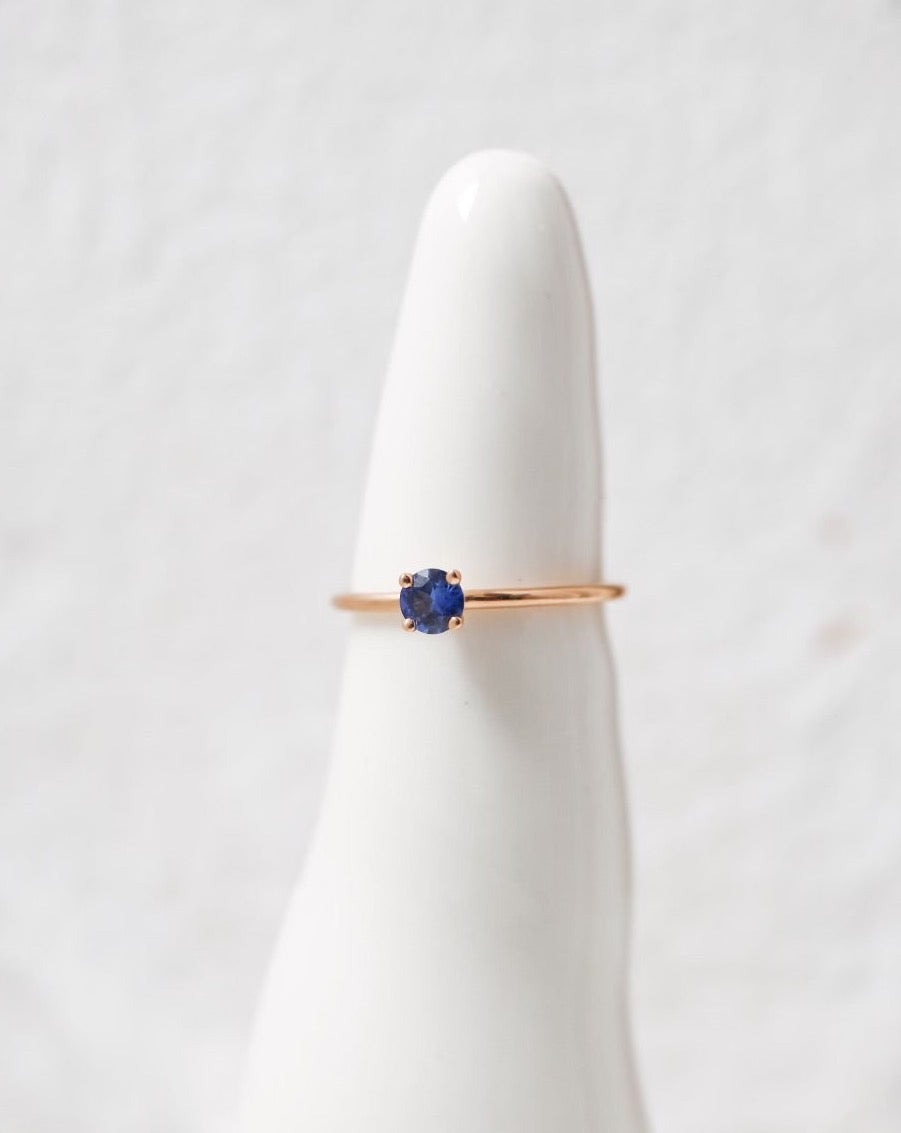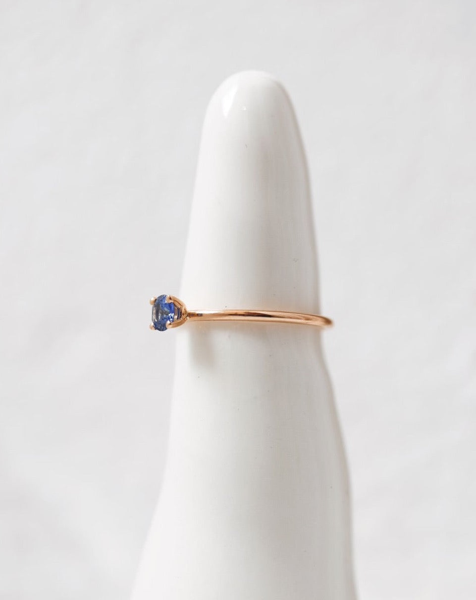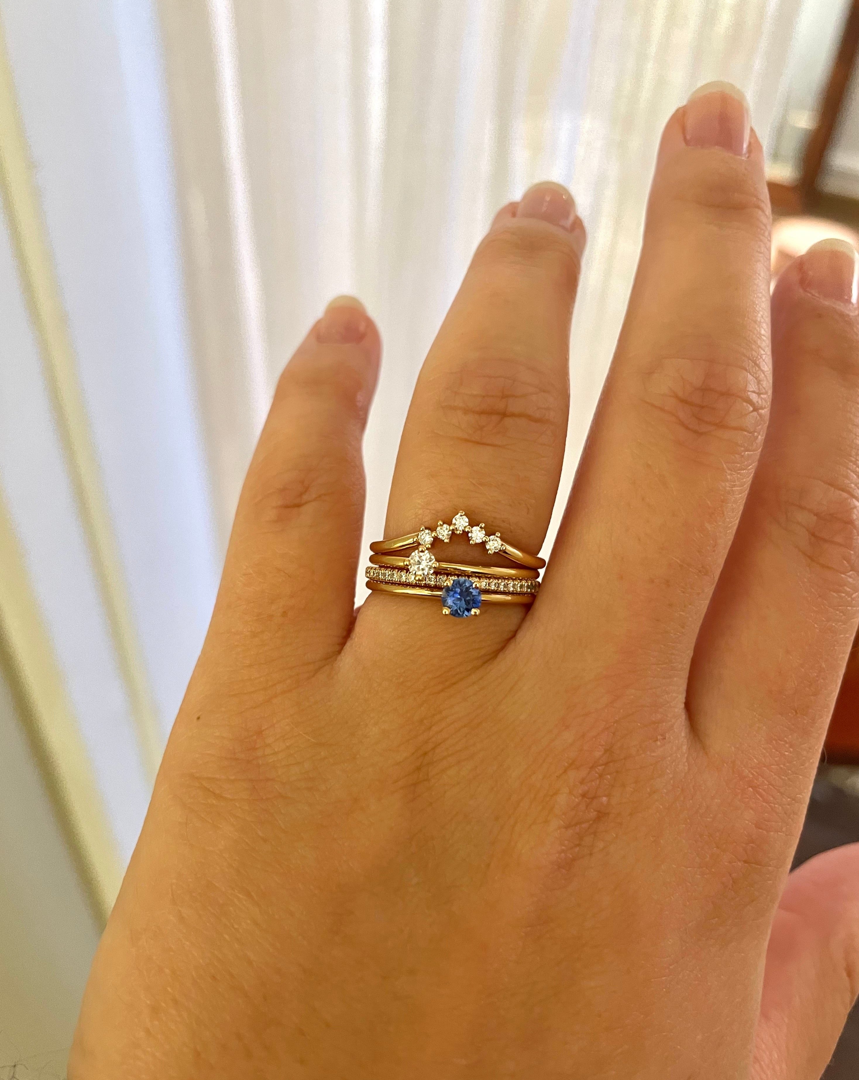 Finished: Low Set Not At All Tiny Diamond Ring with Blue Sapphire