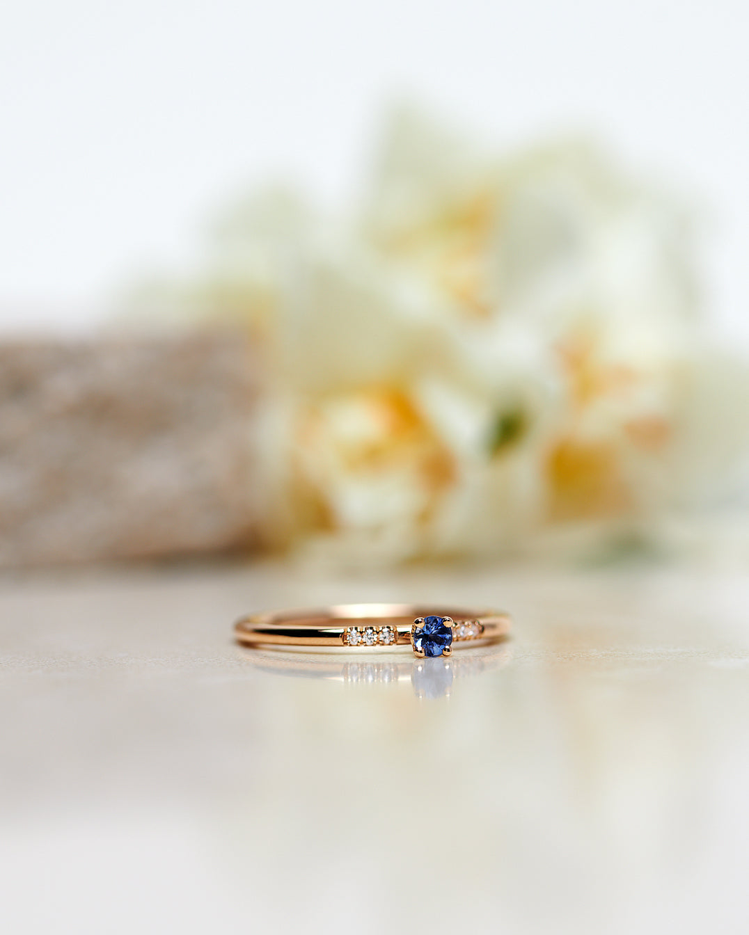 They have excellent durability and our blue sapphires are completely natural. Blue sapphires come in many hues ranging from dull to vivid, light to dark. In this ring we've used a mesmerizing light blue sapphire.
