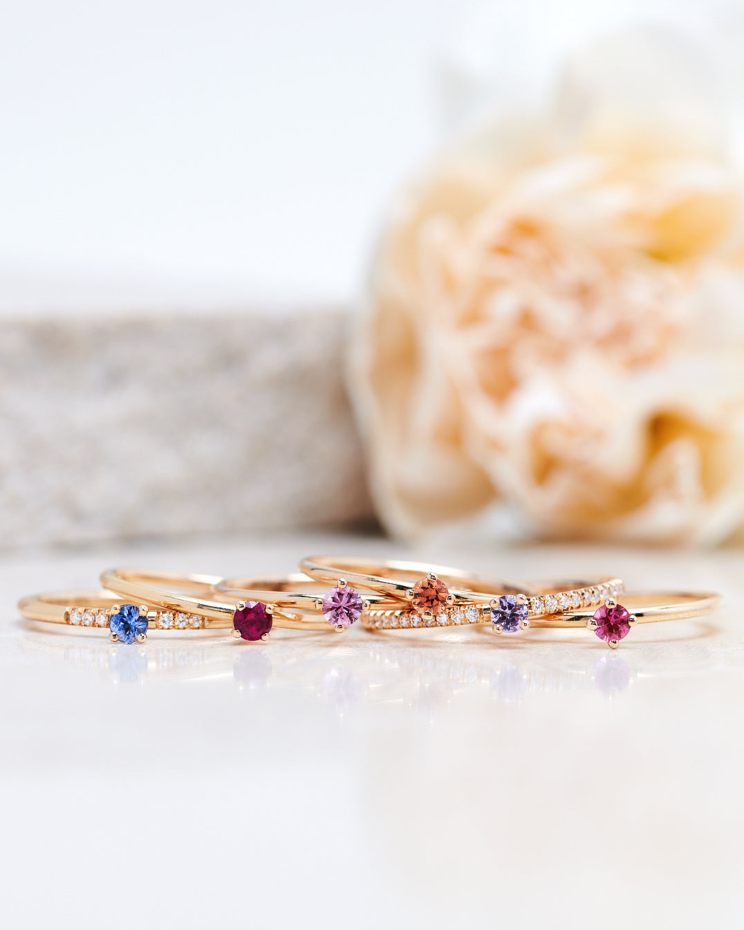 Ringar med ädelstenar: standard produktionstid 6-7 veckor.