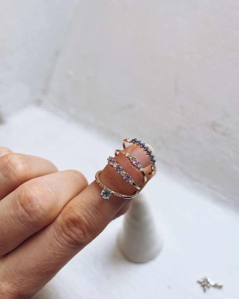 This ring looks just as beautiful alone on the finger as it does in a stack. It stacks wonderfully with most other rings from the collection.