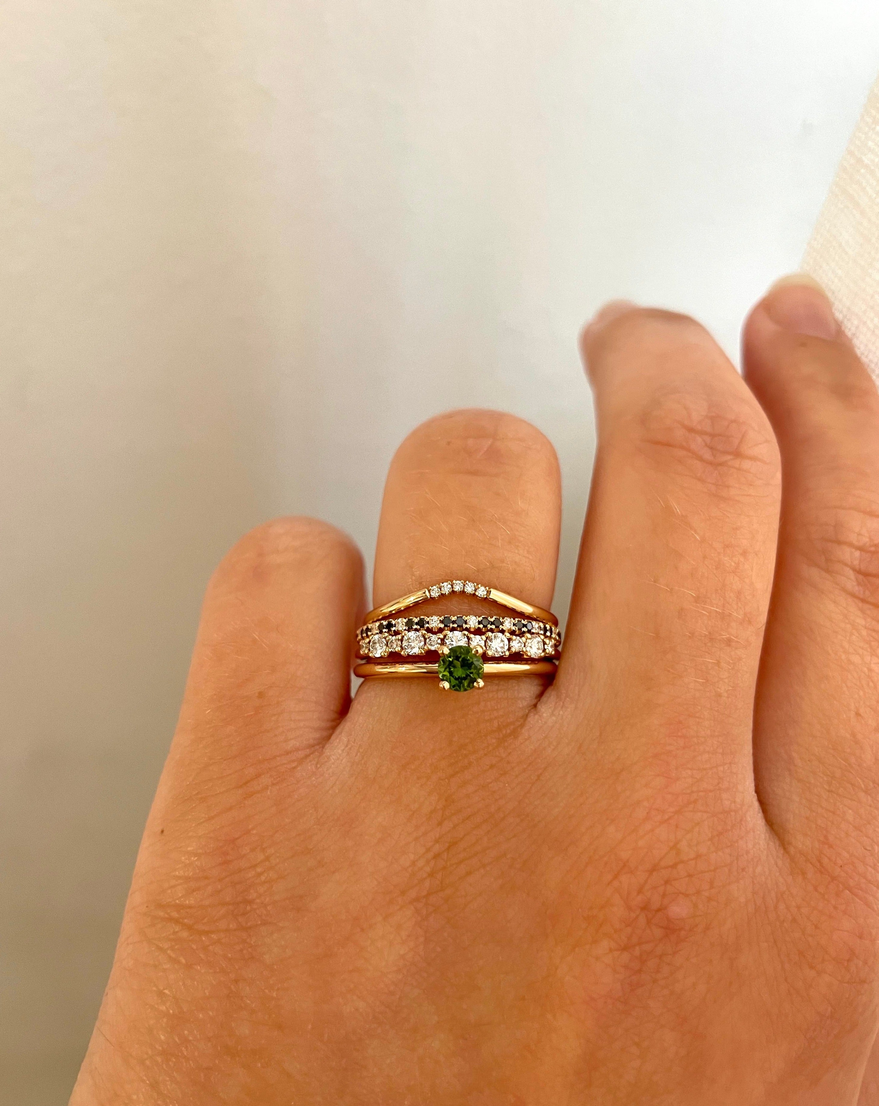The low set version of Not At All Tiny Ring is perfect if you want the gemstone set close to your finger. Unlike many other low set solitaires, this ring is also beautiful stacked with other rings.
