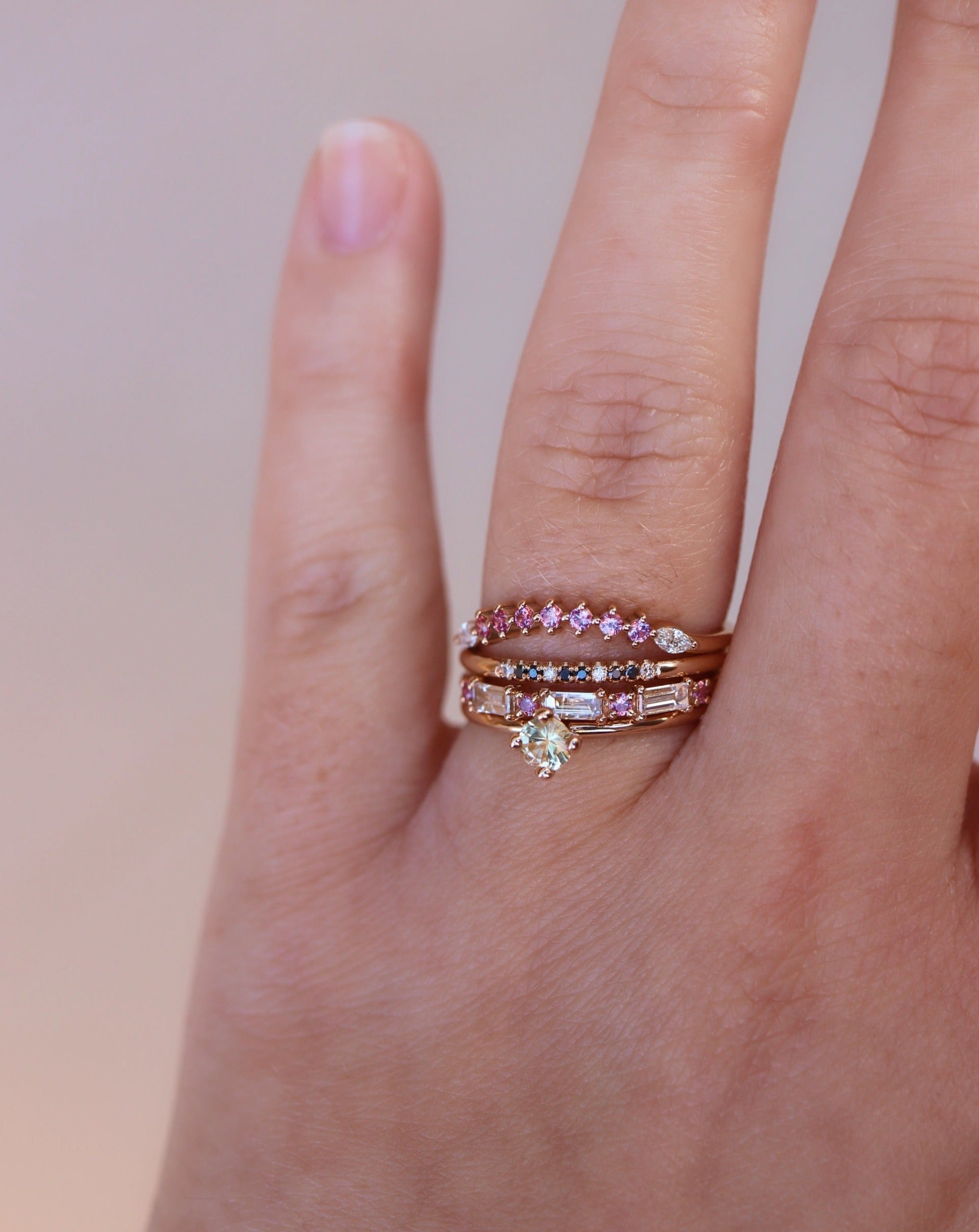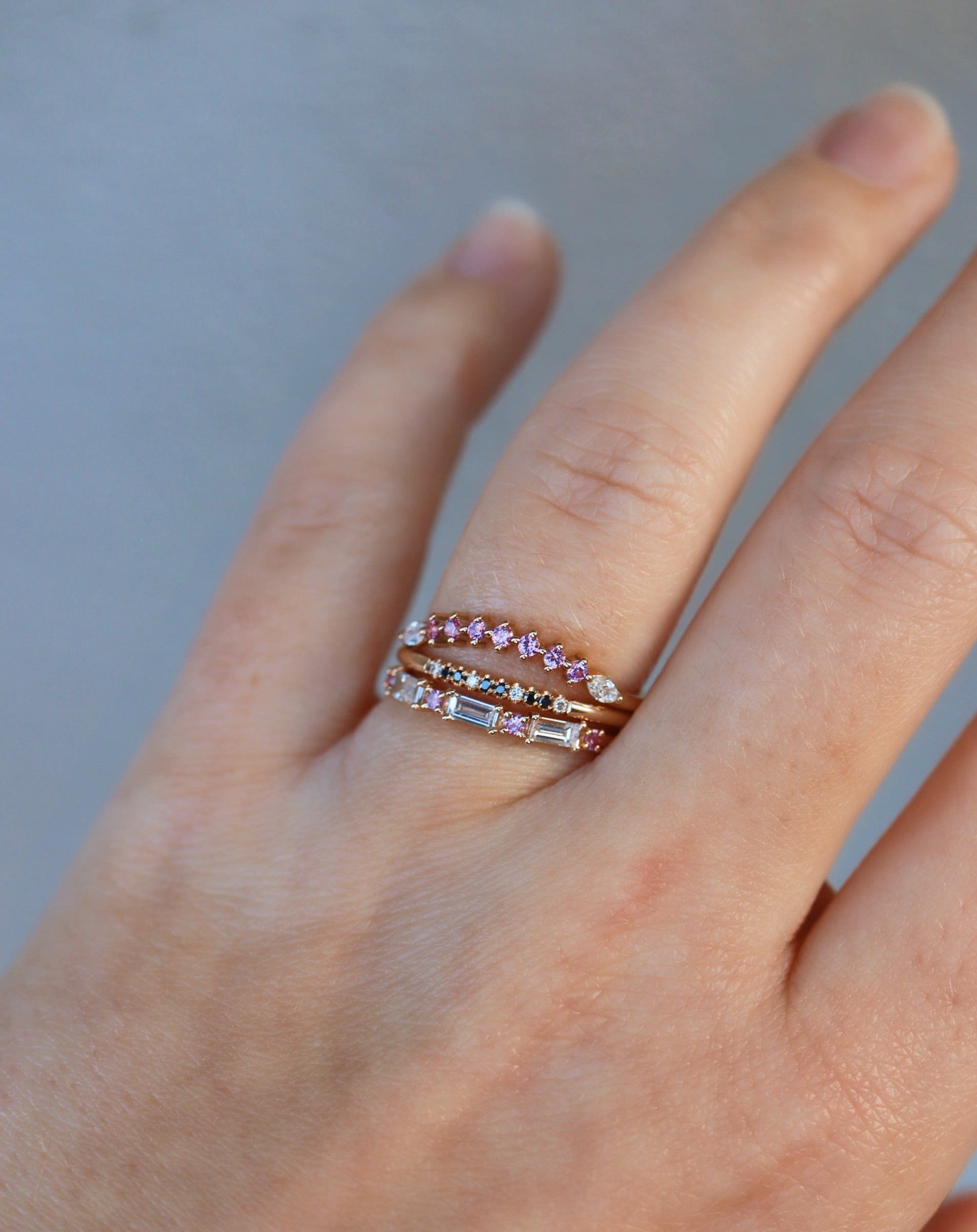 This ring looks beautiful alone on any finger but is also perfect for stacking.