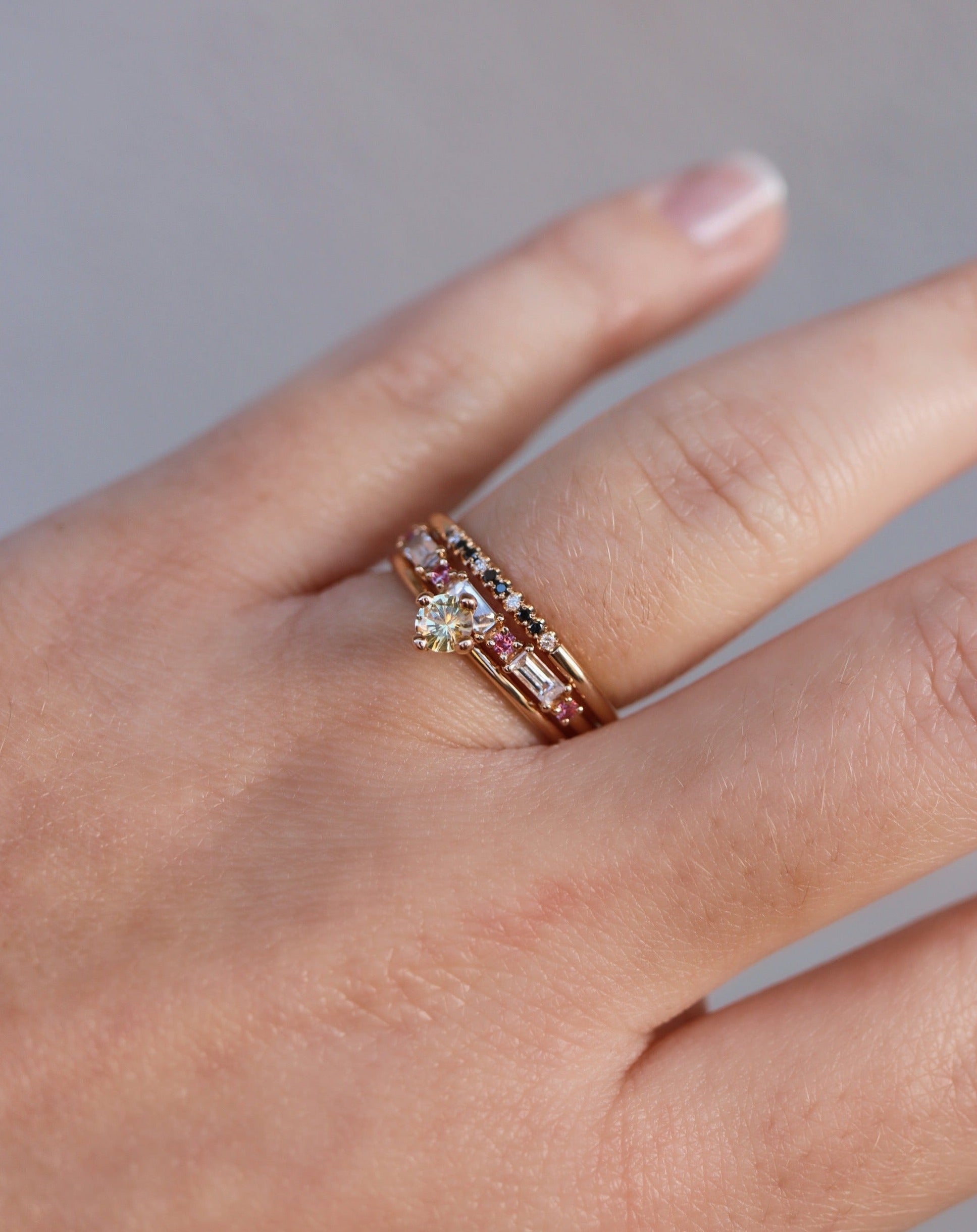 Sometimes, adding a pop of color to your jewelry can feel a bit daunting, but we want to show you how much fun it can be! Here we have used four different colors in the same stack, that look well-balanced and work perfectly together.
