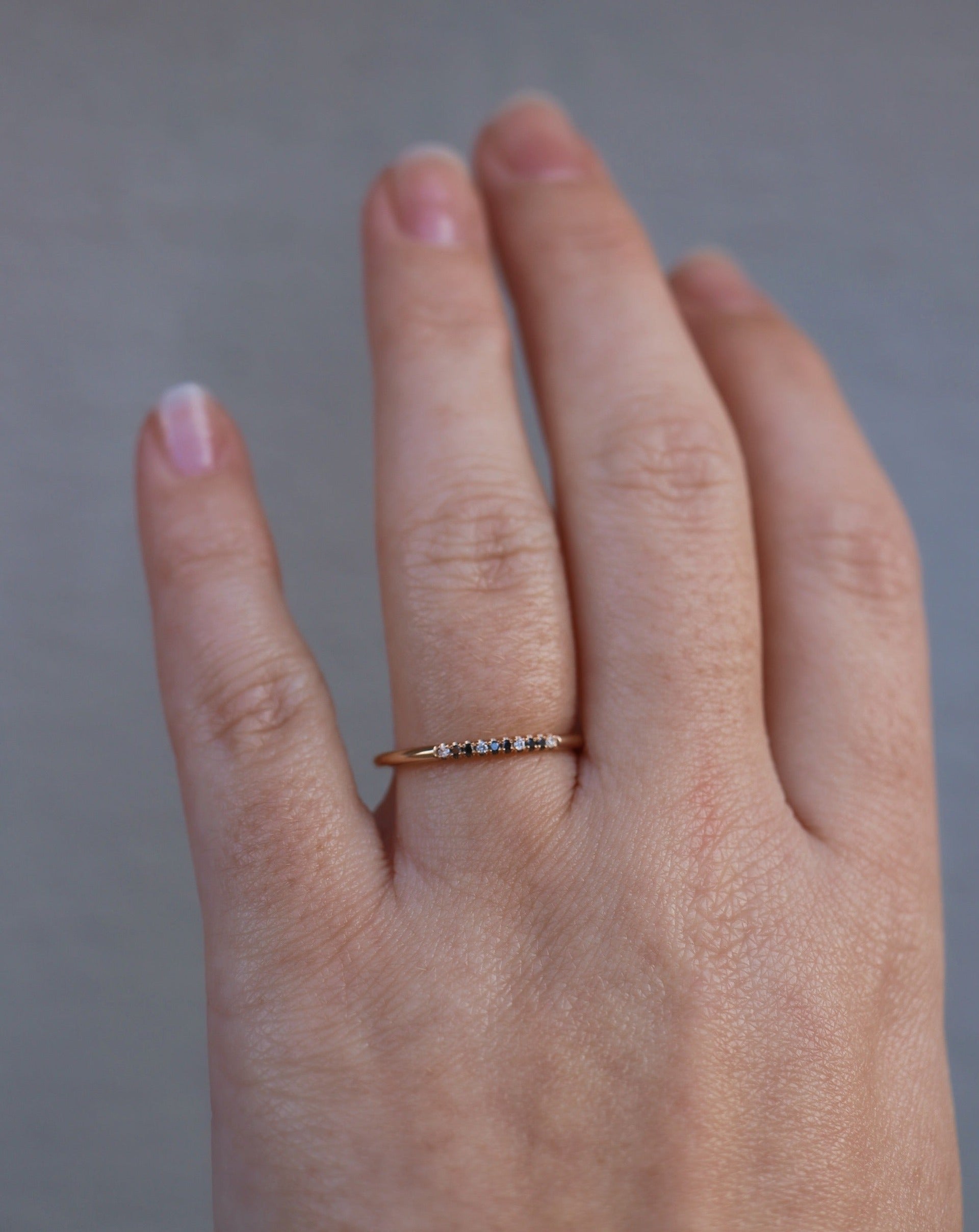Jade Petite Enough is lovely, simple ring with ten small diamonds. The diamonds are set in the band, which makes this ring very comfortable to wear.