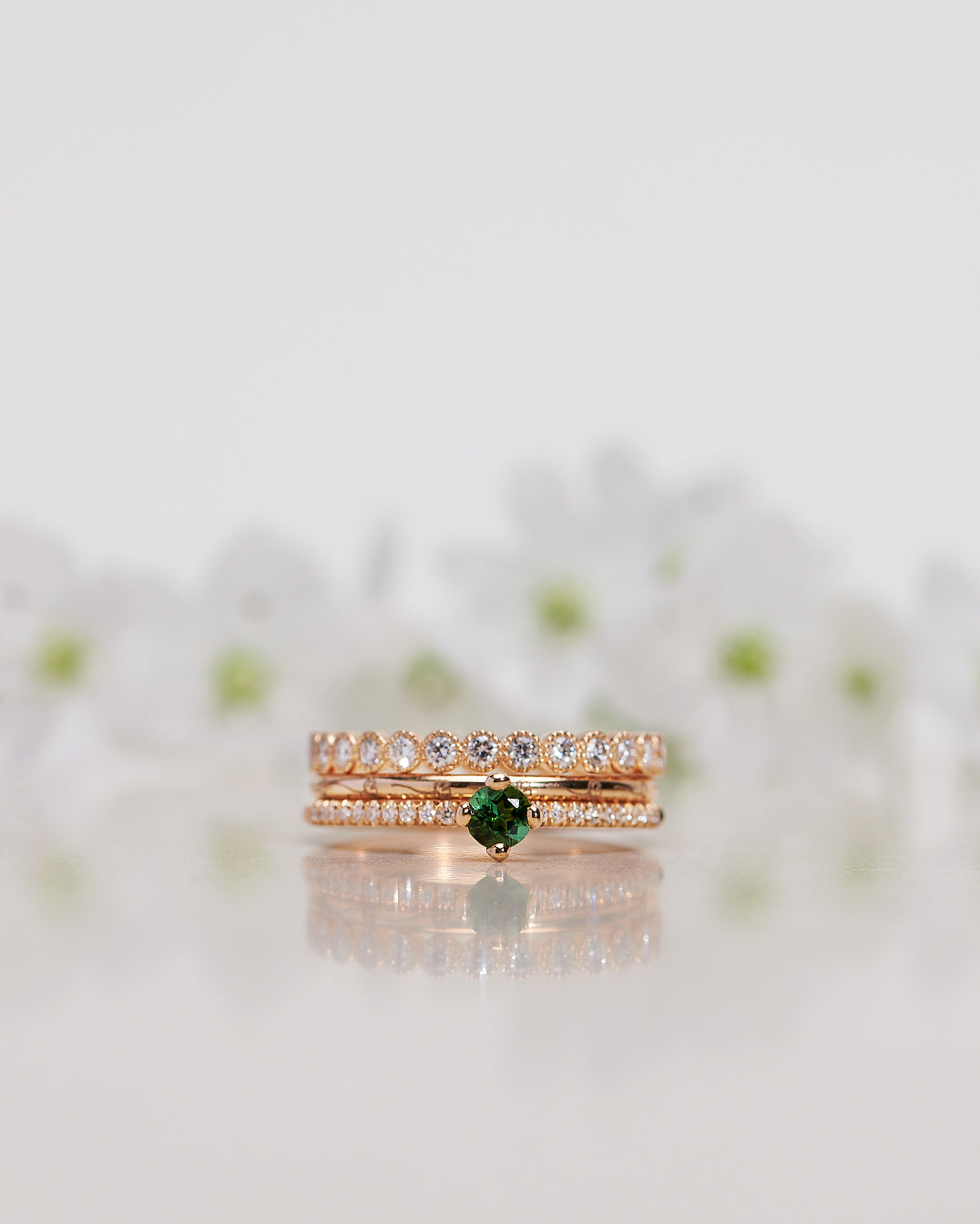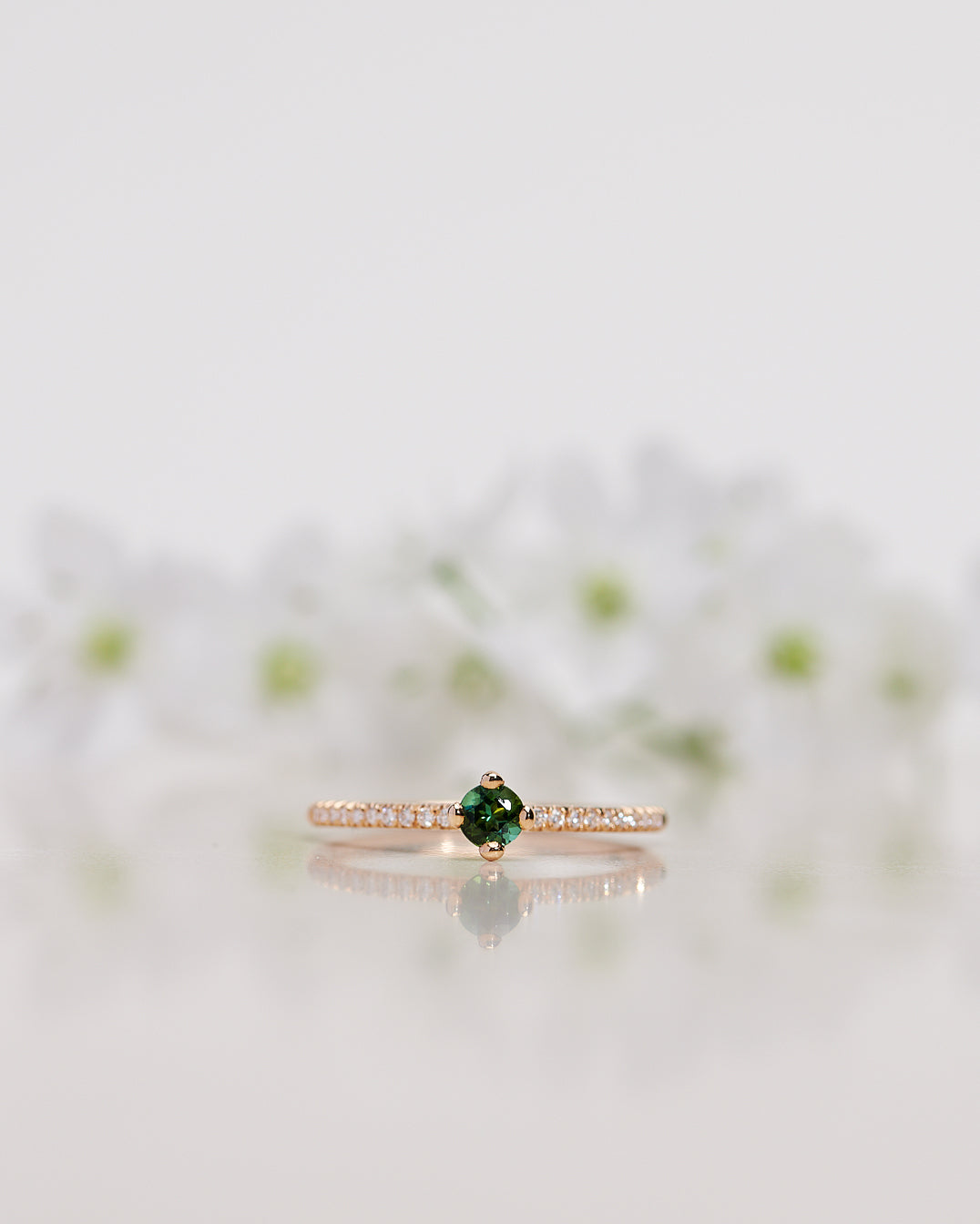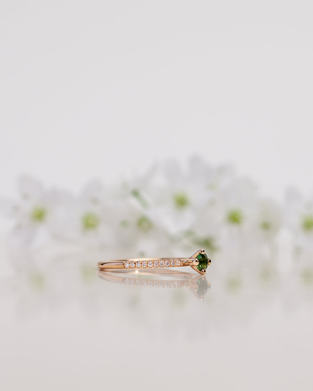 - Not At All Tiny Sparkle Ring with a Green Tourmaline and Diamonds