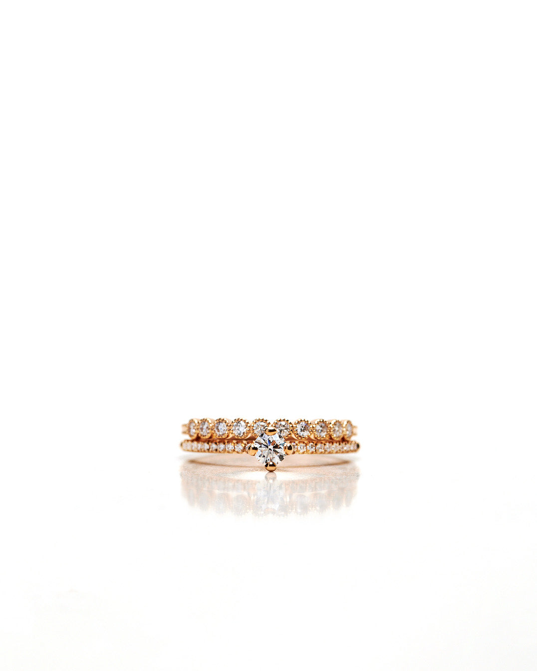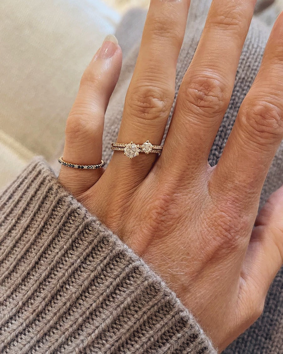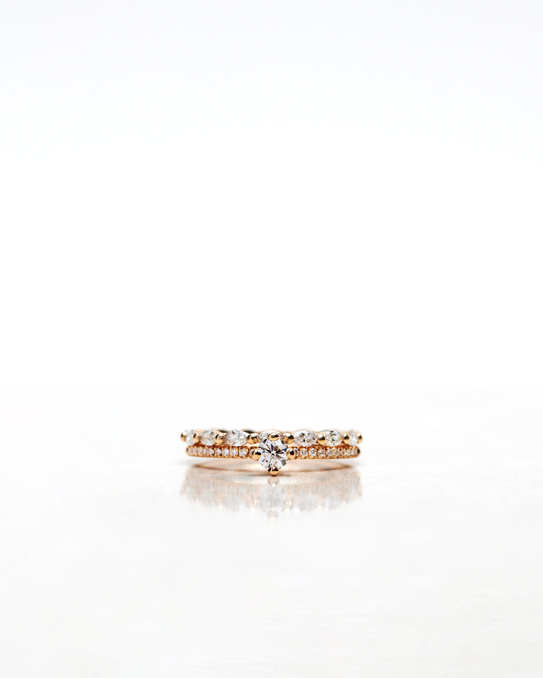 This ring looks just as beautiful alone as in a stack. It stacks wonderfully with most other rings from the collection.