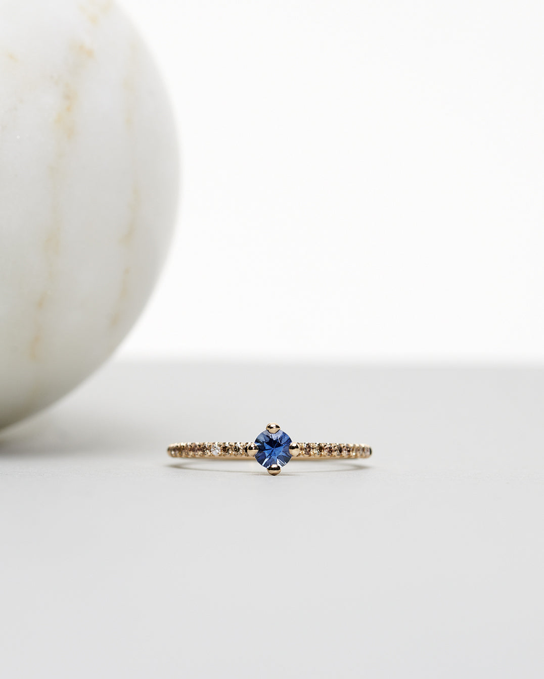 - Not At All Tiny Sparkle Ring with Royal Blue Sapphire and Chocolate Diamonds