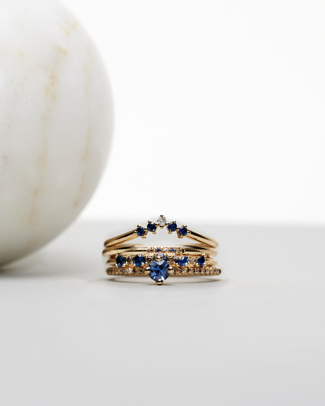 This ring looks amazing alone on the ring finger or middle finger but is also great for stacking and works well with many rings from our collection.