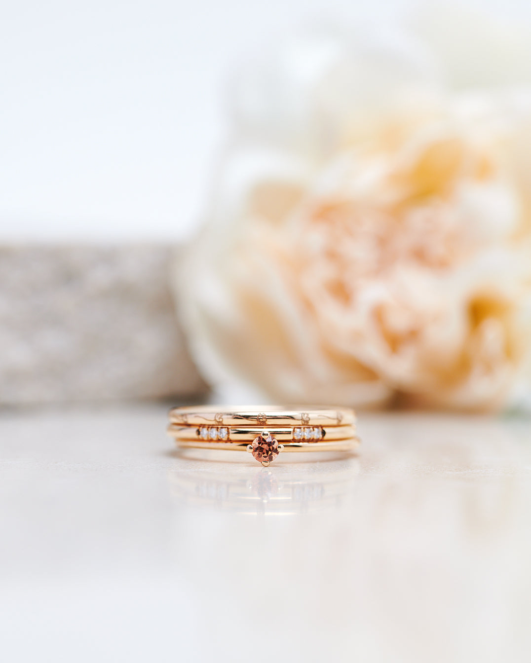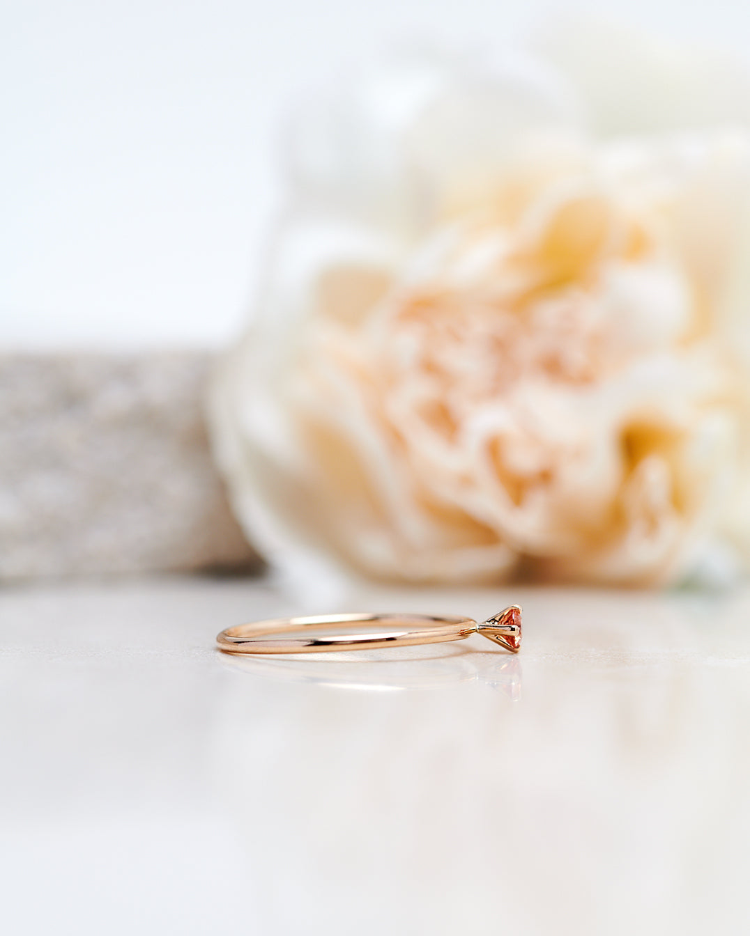 This ring is definitely a favourite among our team members- the orange colour really blends in well with the yellow gold and the result is a very soft and well balanced ring that goes amazingly with other gold rings!
