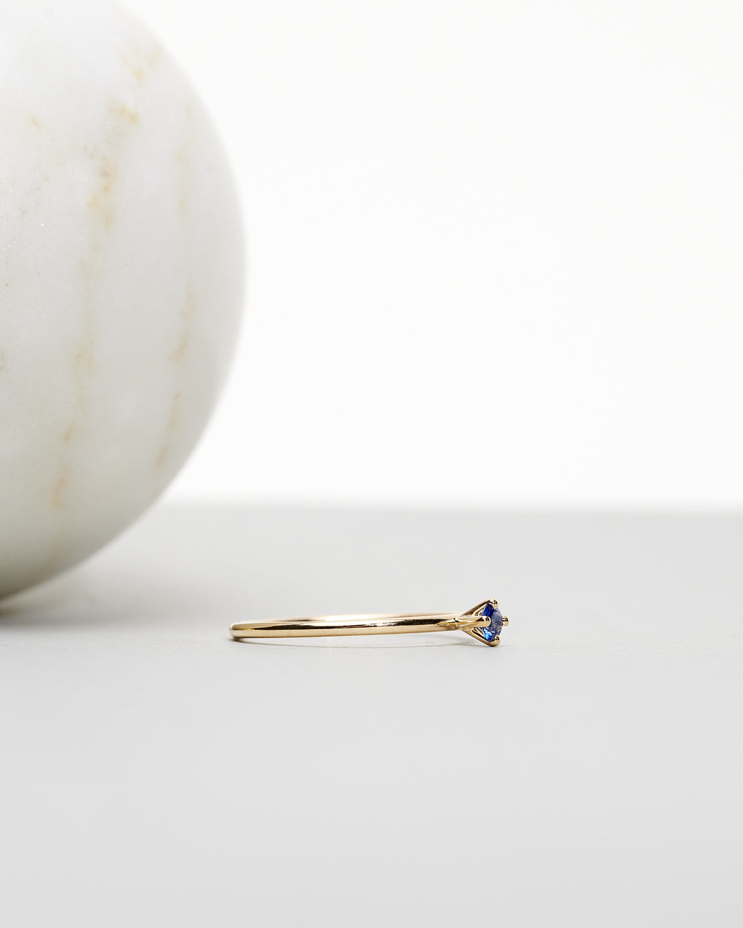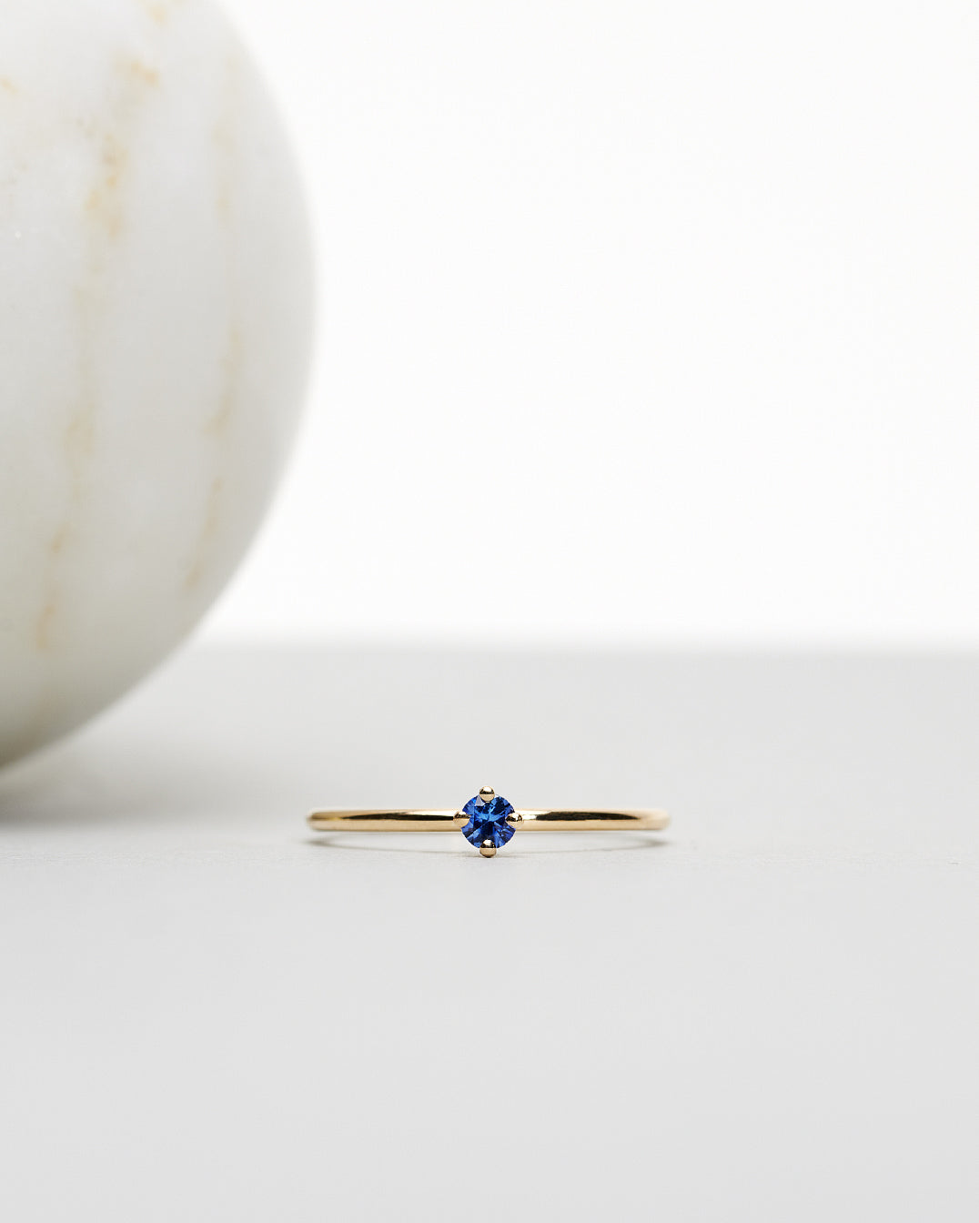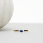 This version features a 3 mm (approx. 0.11 CT) Blue Sapphire in a lovely vivid blue color.