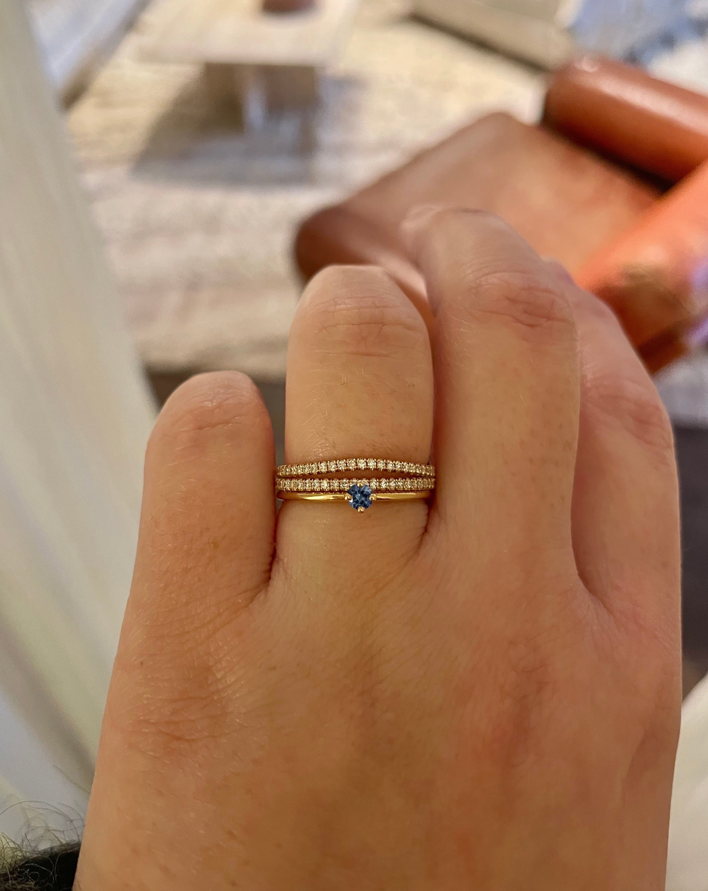 This ring stacks wonderfully with almost all other rings from our collection!