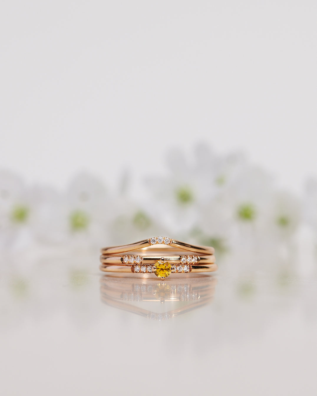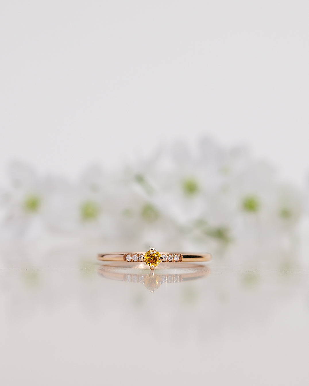 They have excellent durability and come in many different colours, ranging from dark blue to bright yellow. In this ring we've used a beautiful yellow sapphire that is completely natural!