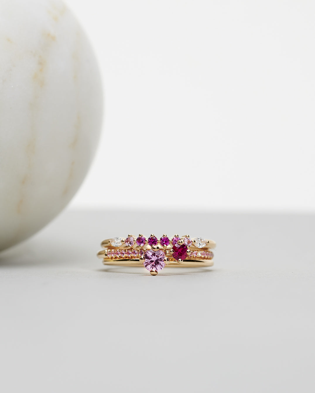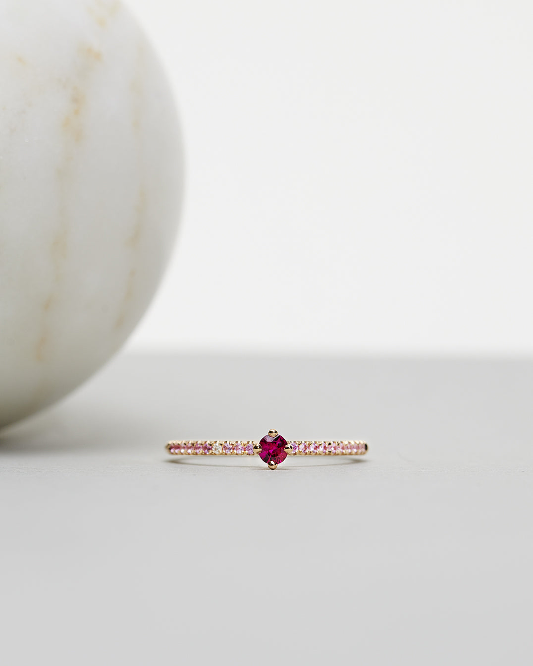 - Not So Tiny Sparkle Ring with a Red Ruby and Light Pink Sapphires