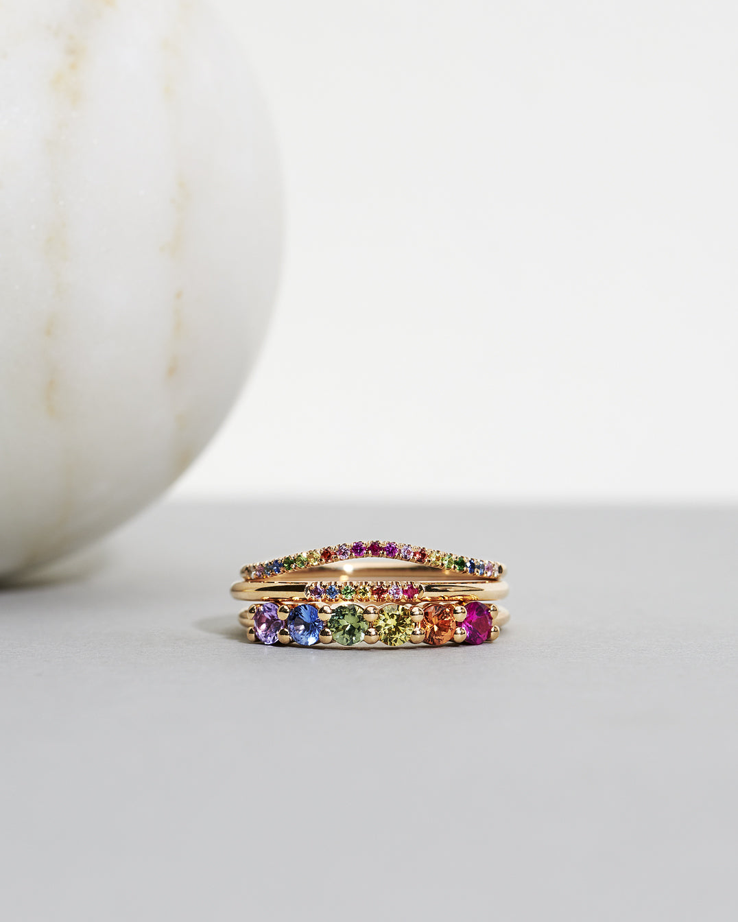 This week, we have used sapphires and tourmalines to create seven rainbow-colored rings to brighten up your day.