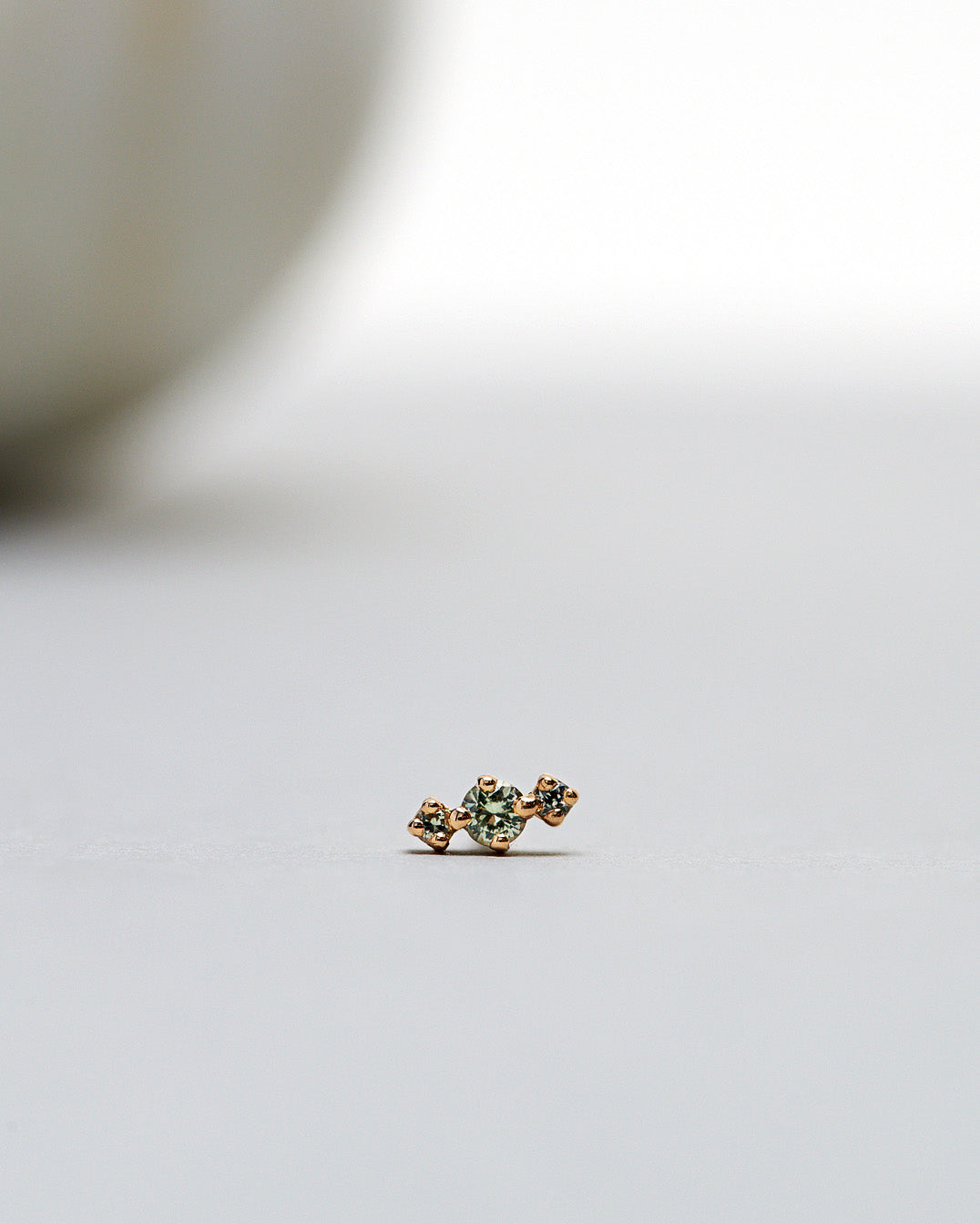 Finished: Tiny Brigitte Diamond Stud Earring with Olive Green Sapphires