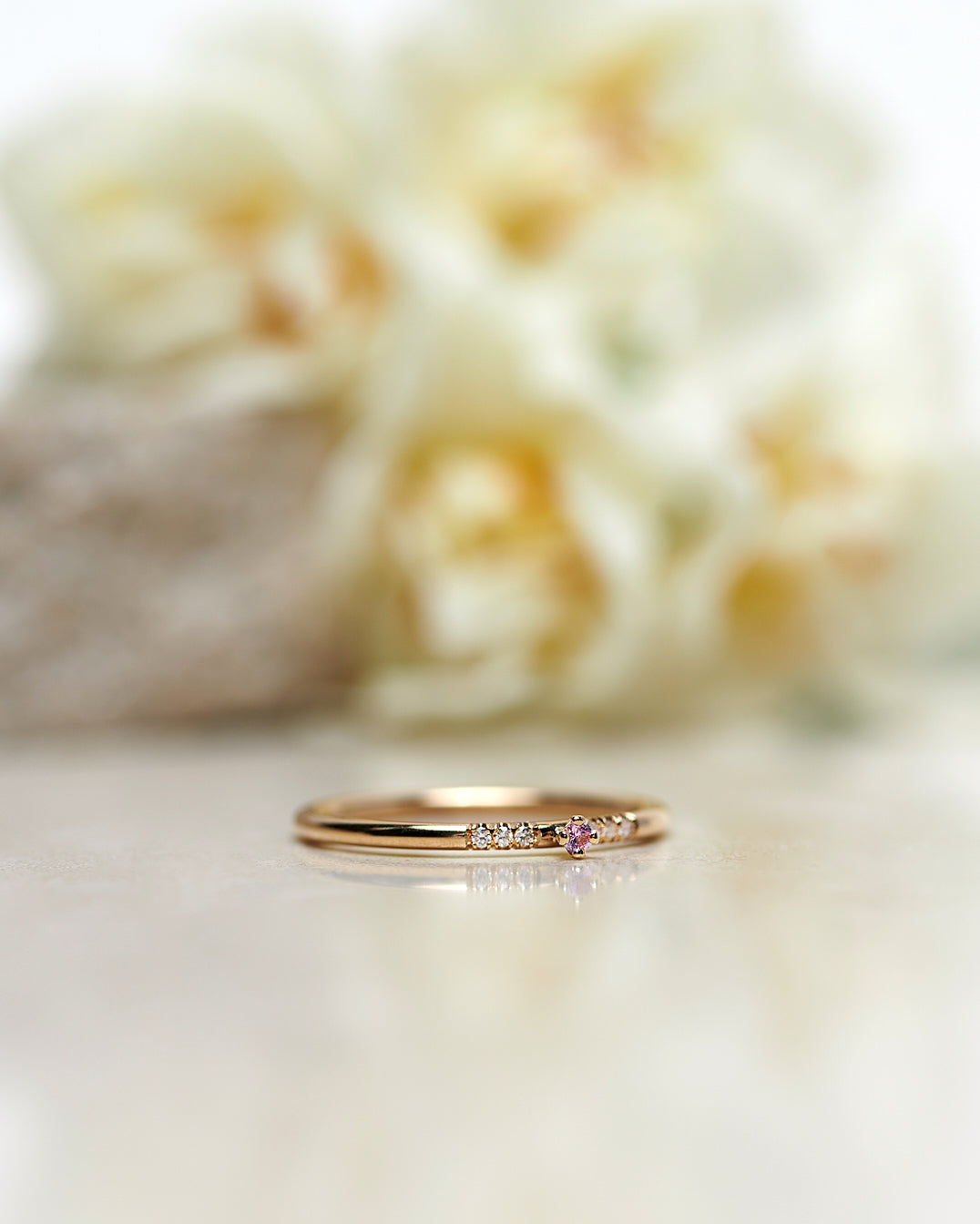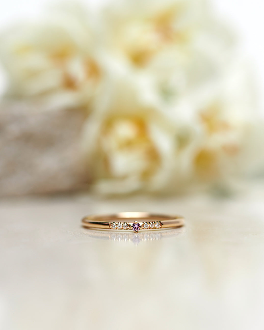 - Tiny Little Sparkle Ring with a Light Pink Sapphire and Diamonds