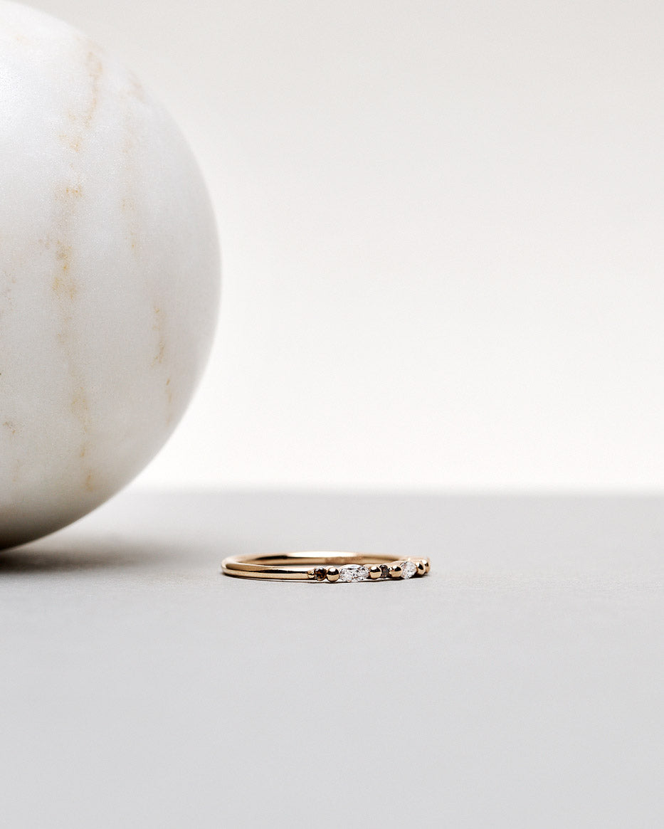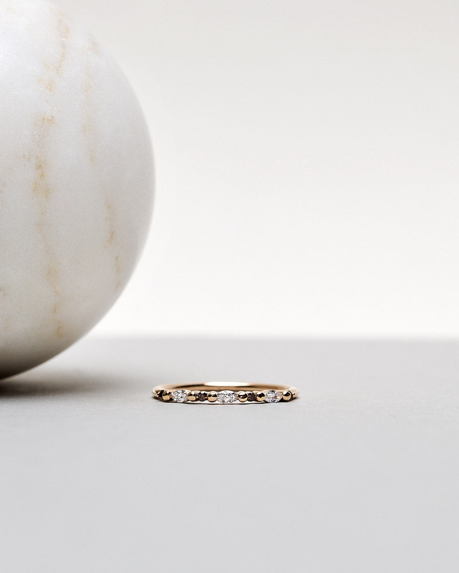 Combining the elegance of marquise-cut diamonds with the modern brilliant cut, the new Zoe Ring is an edgy ring with a twist!