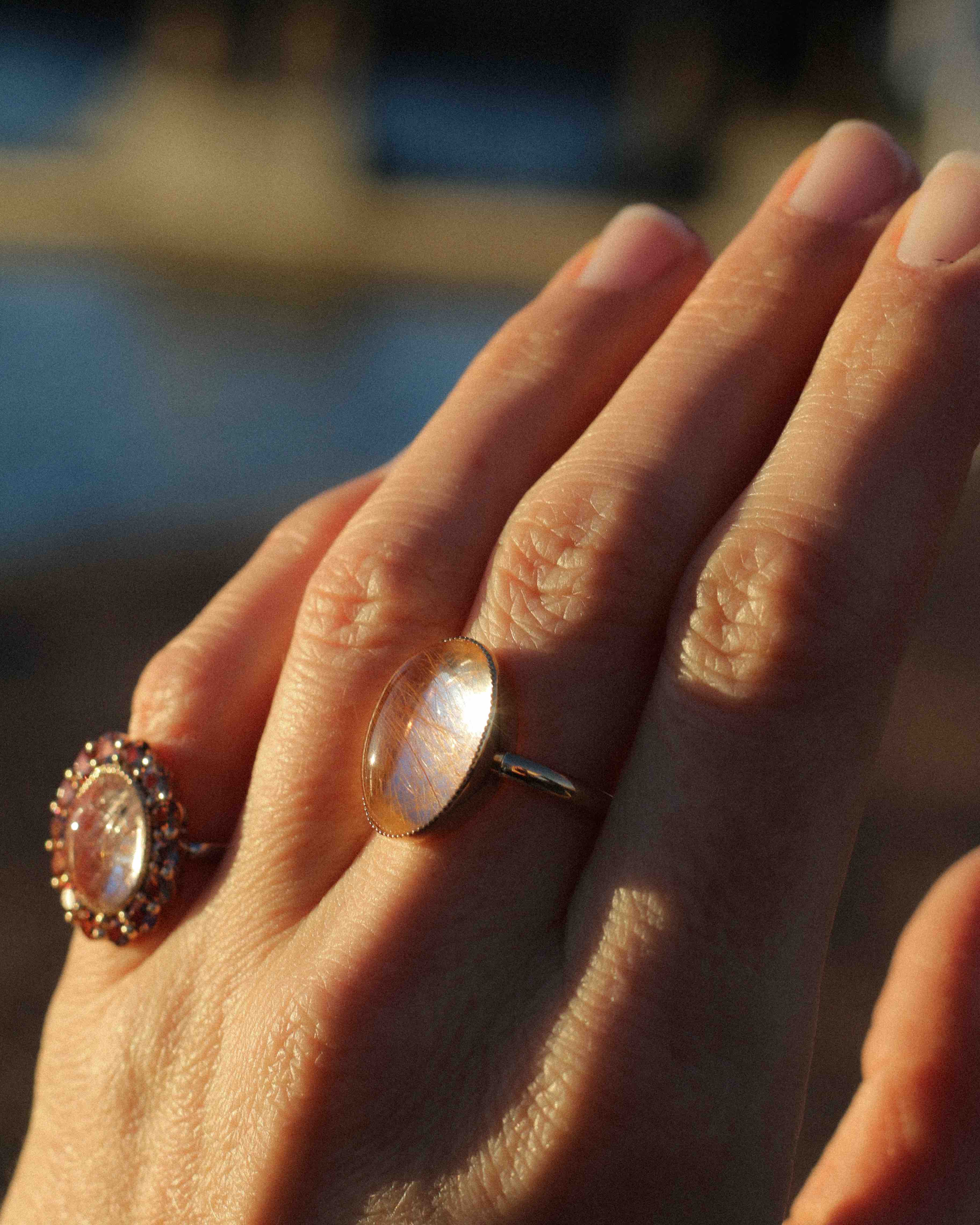 En statementring med otrolig intensitet och livfullhet, tack vare den vackra, sandfärgade rutilkvartsen.