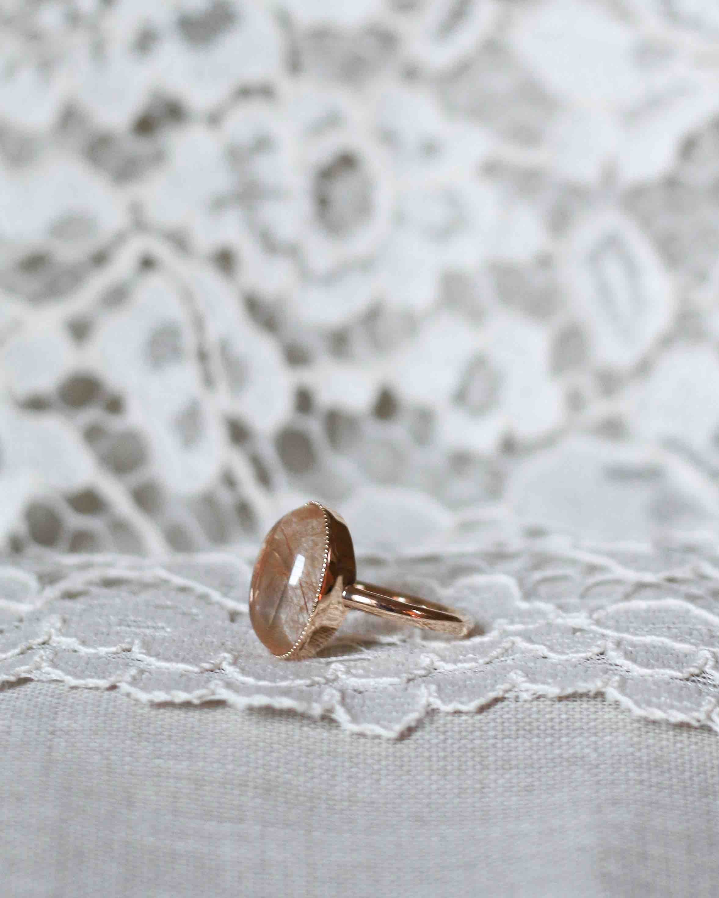 Statementring med Beige Rutilkvarts och Vintagedekor