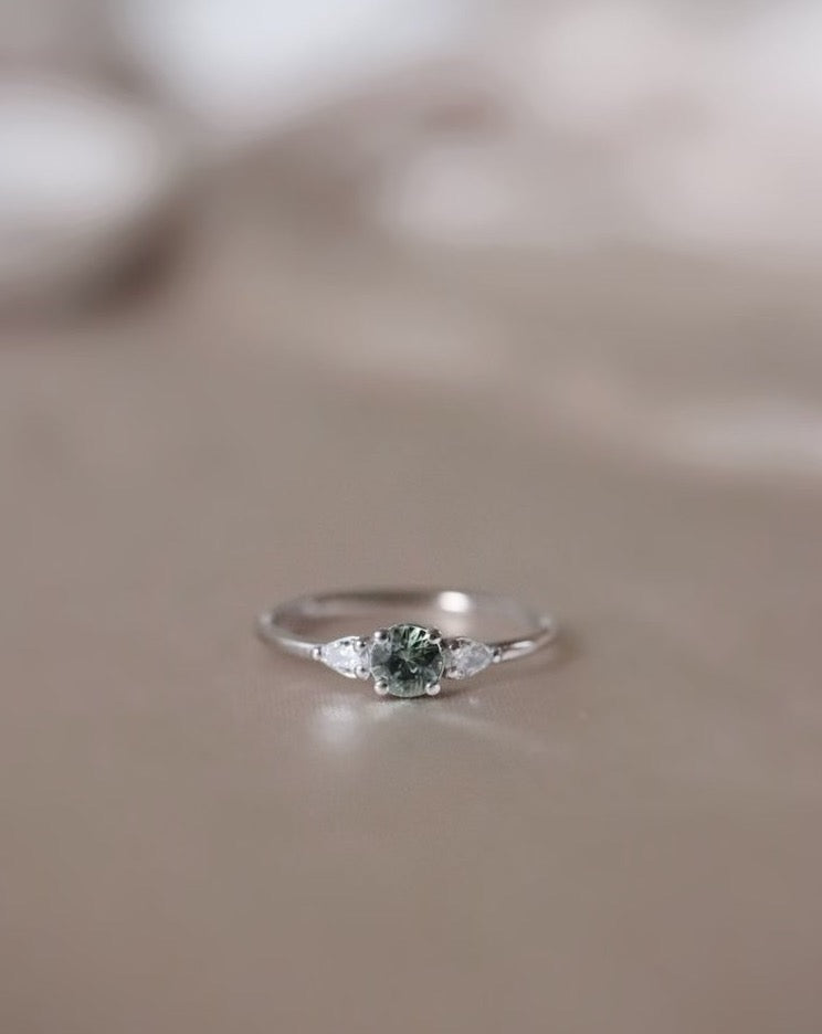 One-Of-A-Kind Edith Ring with Thyme Green Sapphire and Drop Diamonds